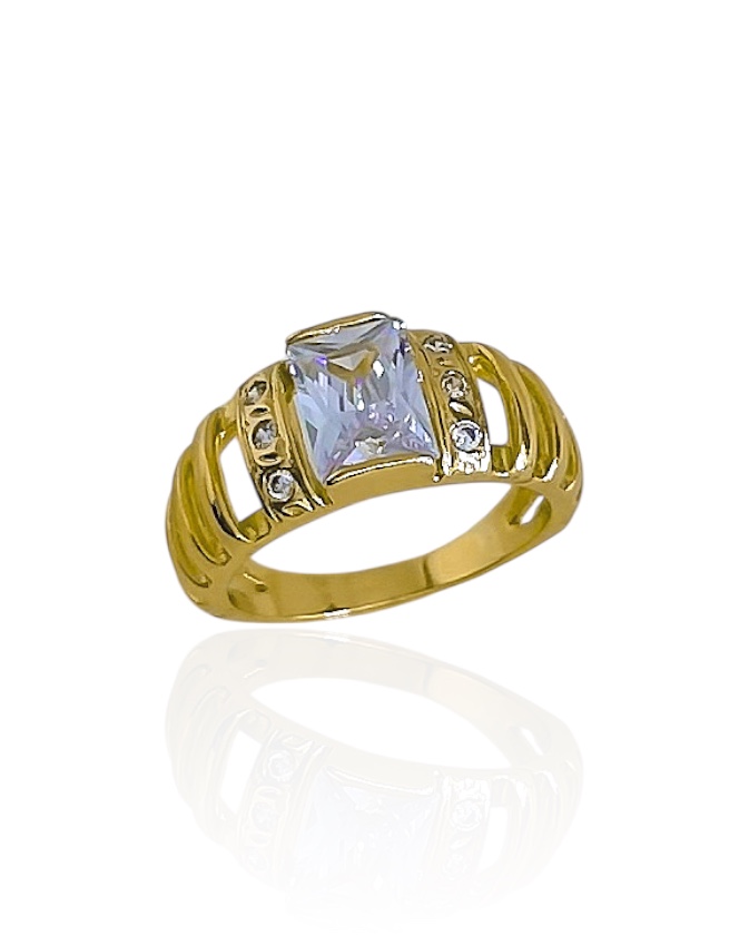Anel Banhado a Ouro Esteira Vazado Cravejado Incolor