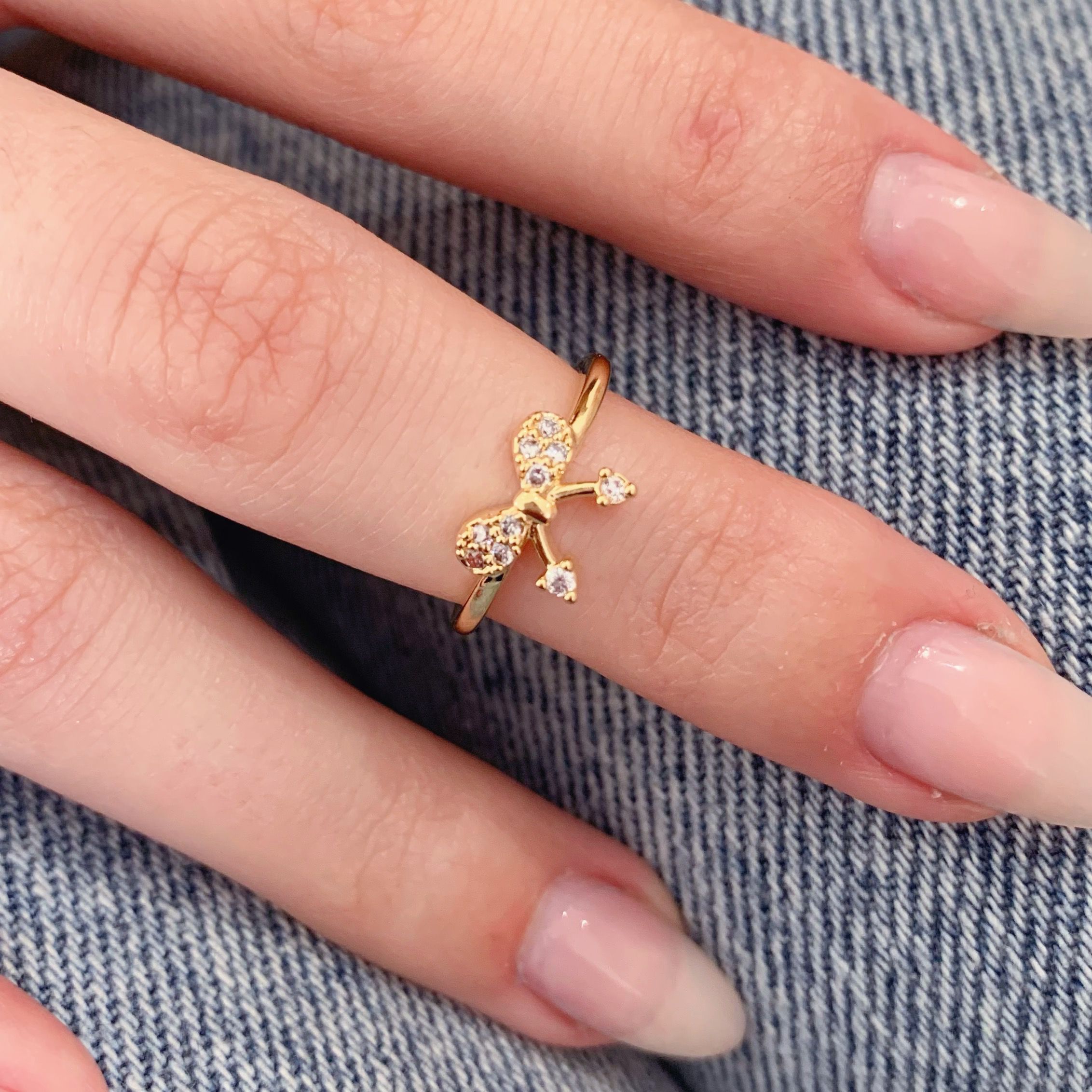Anel Banhado a Ouro Falange Laço Cravejado