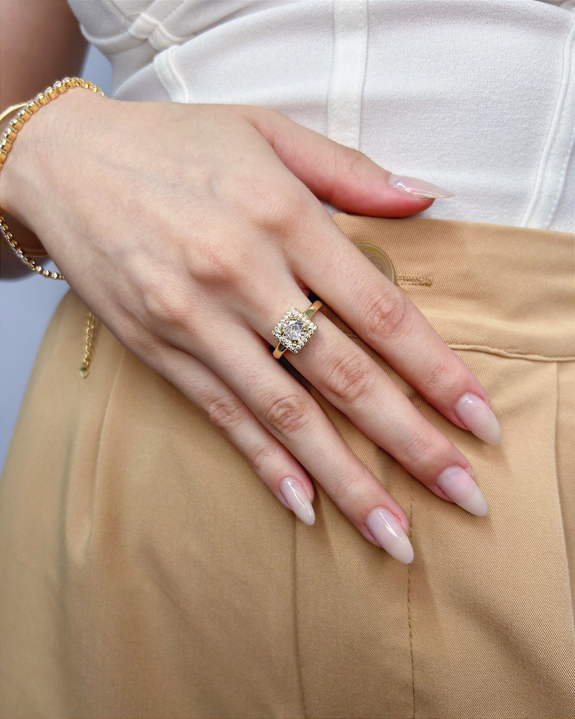 Anel Zircônia e Quadrado Cravejado Incolor - Banho de Ouro 18k