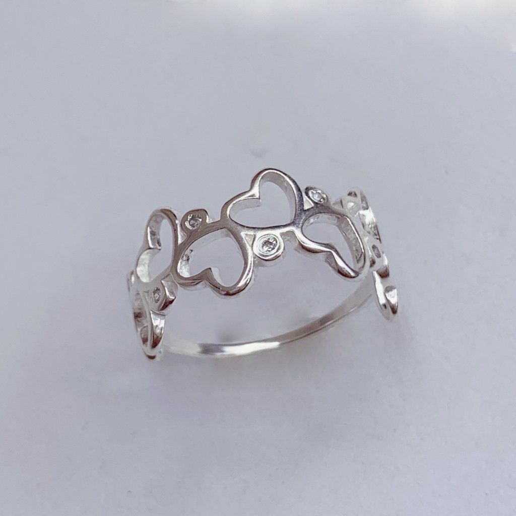 Anel 8 Corações Vazados com zircônias - Prata 925