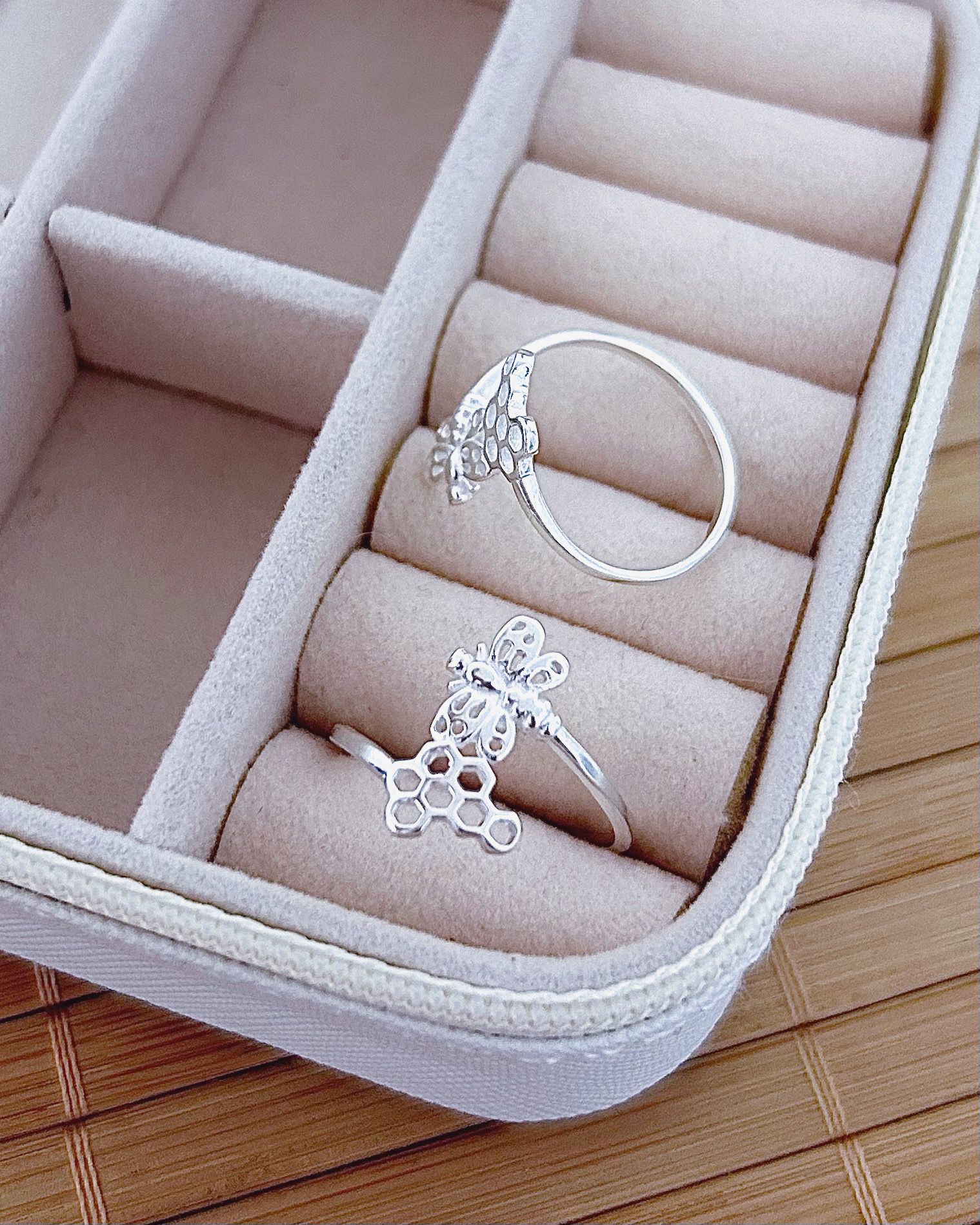 Anel de Prata Abelha e Mel Vazado