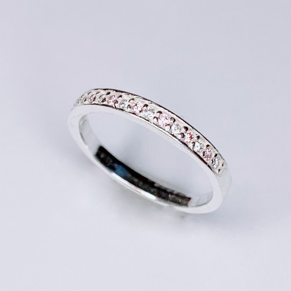 Anel de Prata Meia Aliança Cravejada Rosa Claro + incolor