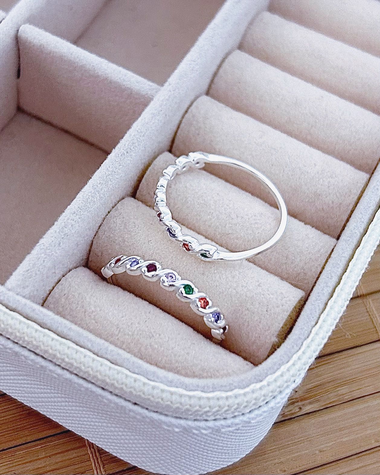 Anel de Prata Meia Aliança Trançada Cravejada Colors