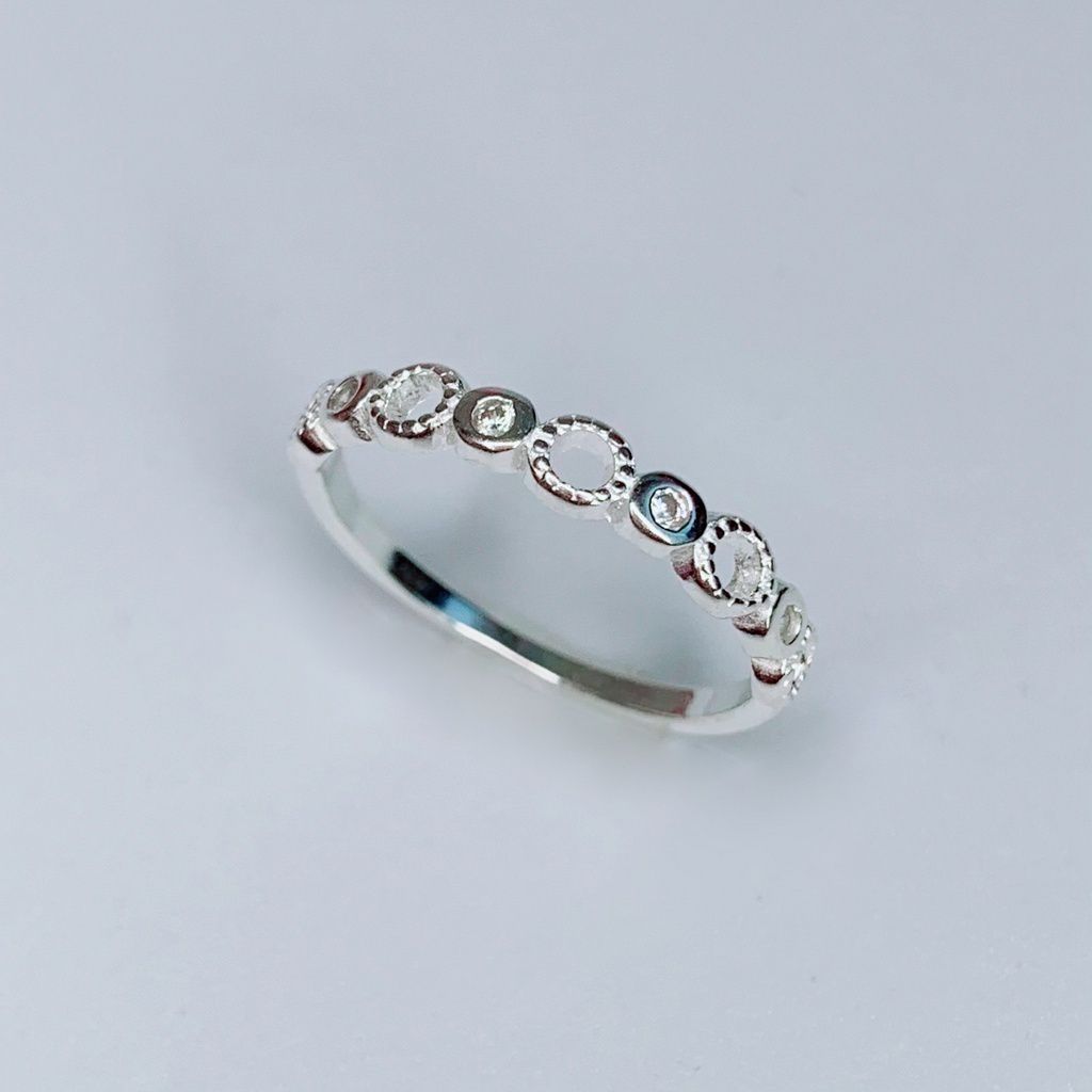 Anel de Prata Meia Aliança Zirconia +circulo Vazado