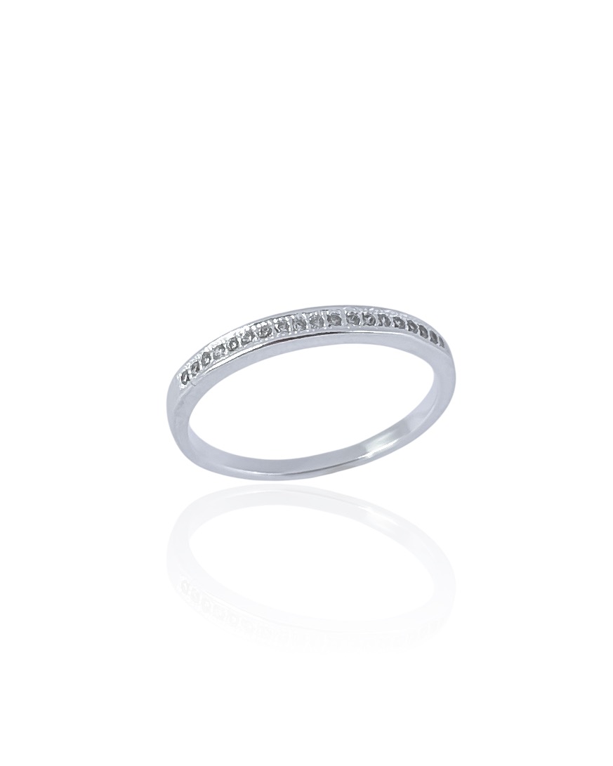 Anel em Prata 925 Modelo Meia Aliança Metade Cravejada com Zircônias Cristal.