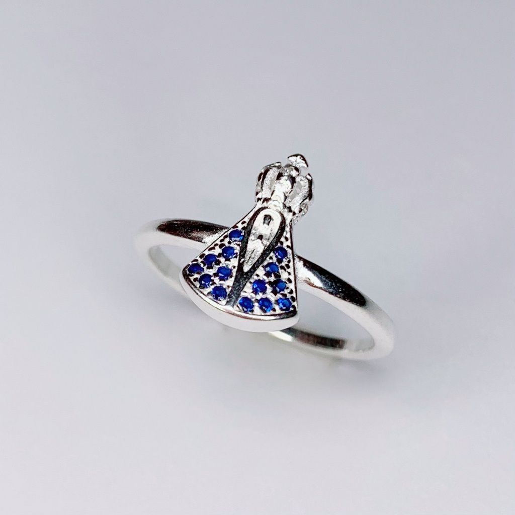 Anel de Prata Nossa Senhora Cravejado Azul