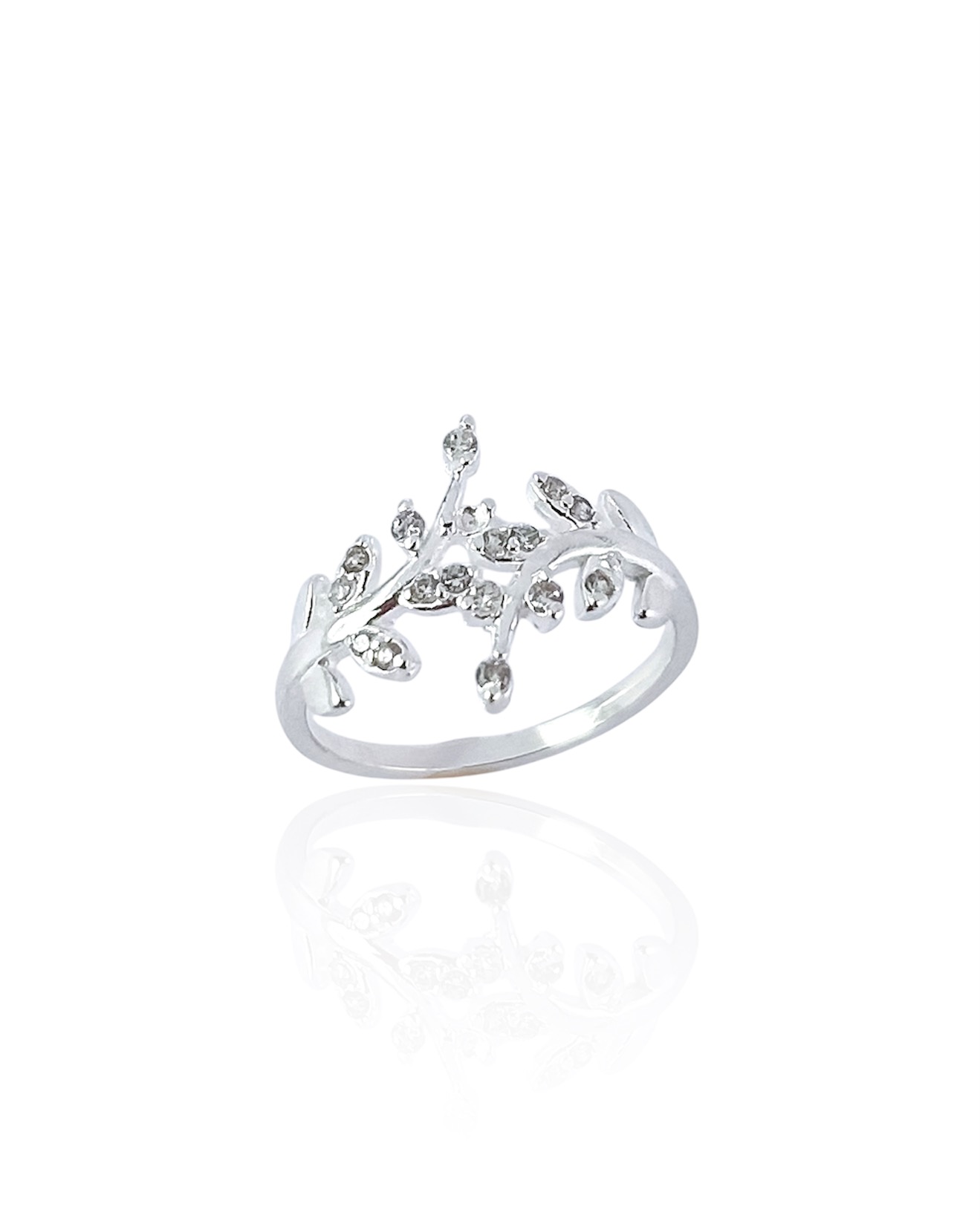 Anel em Prata 925 Dois Ramos Cruzados e Cravejado com Zircônias Cristal.