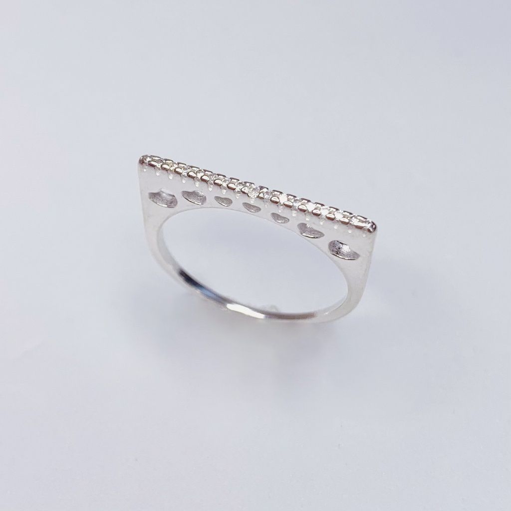 Anel Reto Cravejado com Corações Vazados - Prata 925