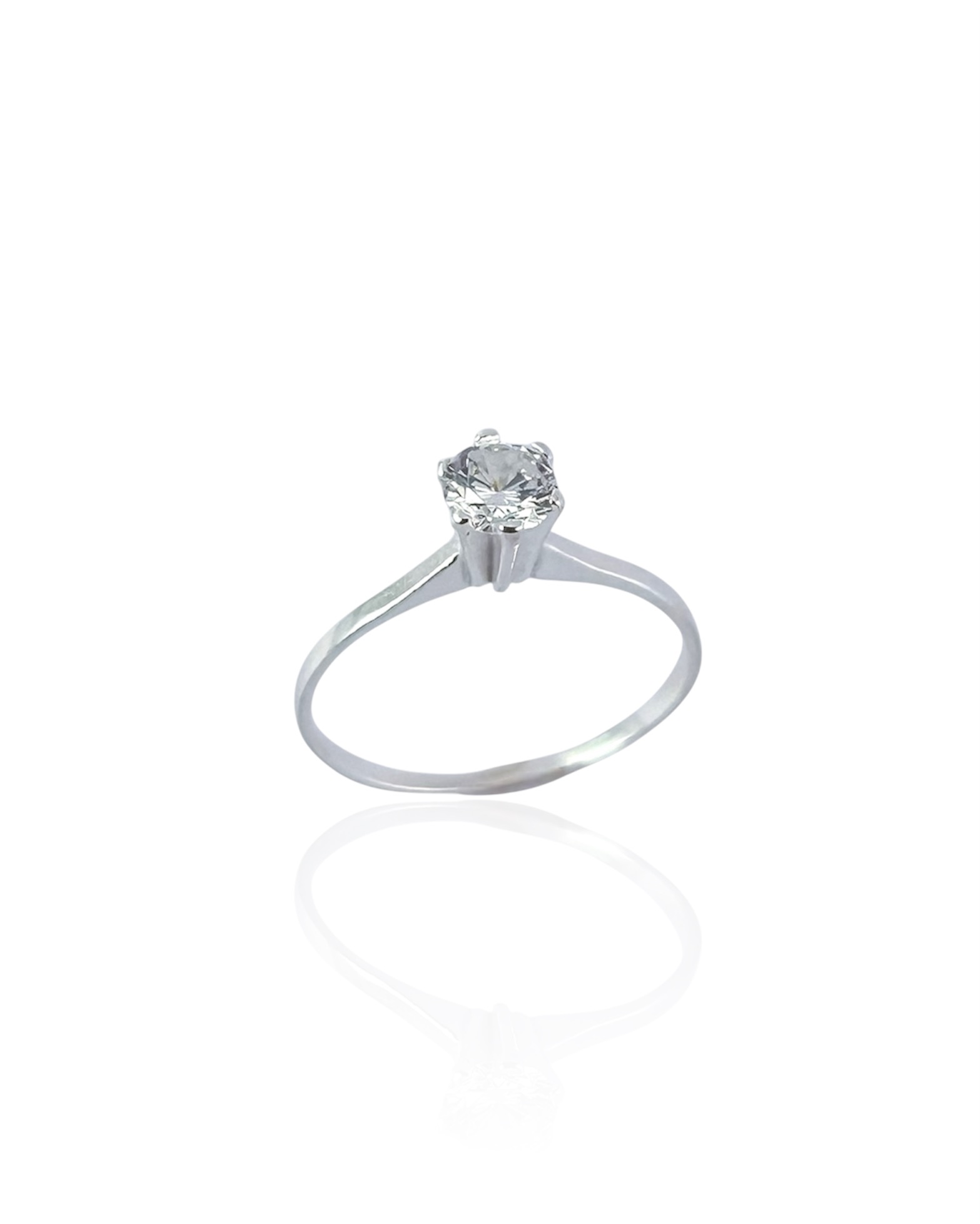 Anel em Prata 925 Solitário Fino com 1 Zircônia Cristal.