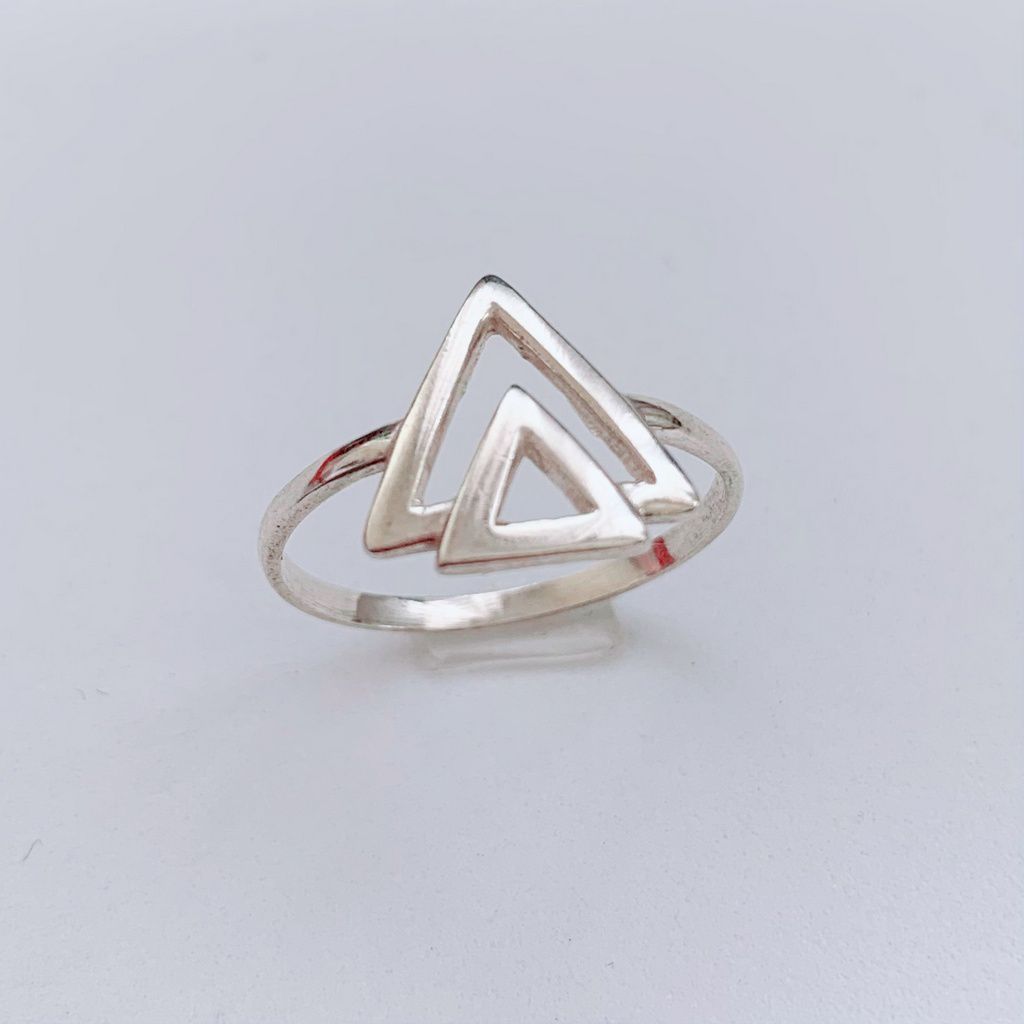 Anel de Prata Triangulo Duplo Vazado