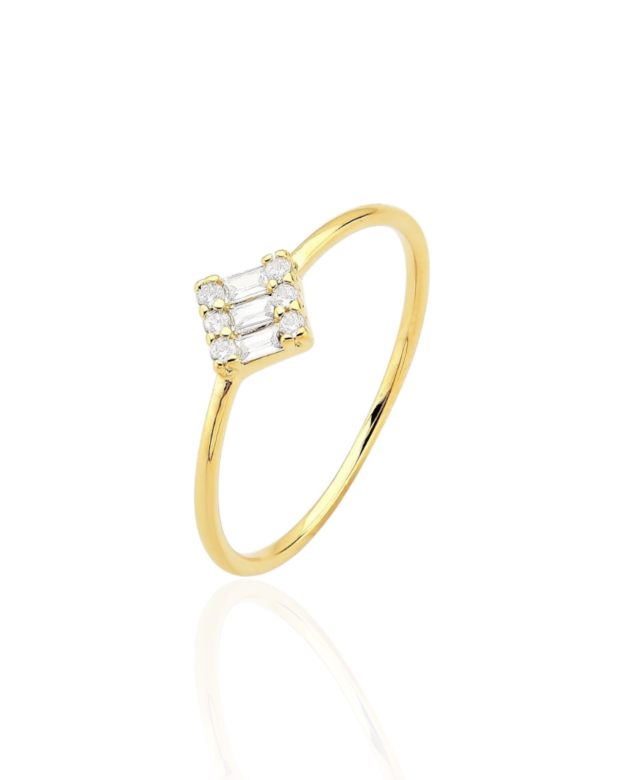 Anel Banhado a Ouro 18k Quadrado Cravejado com Zircônias.
