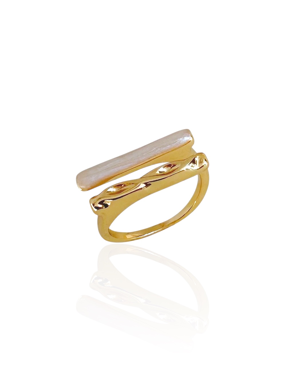 Anel com Banho de Ouro 18k Regulável com 2 linhas paralelas com resina perolada.