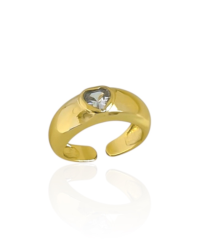 Anel com Banho de Ouro 18k Regulável Liso Abaulado com zircônia de Coração com Cravação Inglesa.