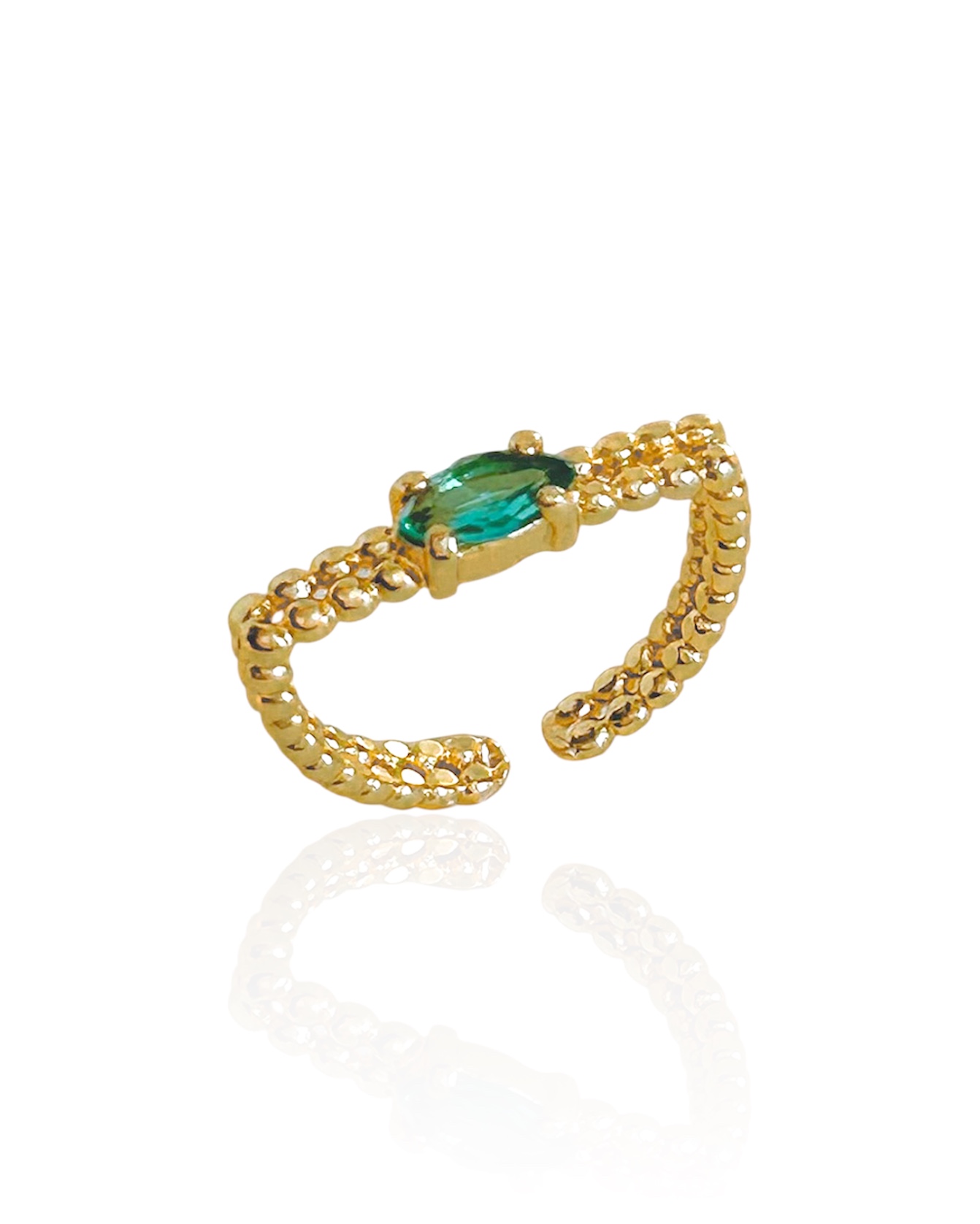 Anel com Banho de Ouro 18k Regulável Quadrado inteiro de bolinhas com Zircônia Navete Verde Água.