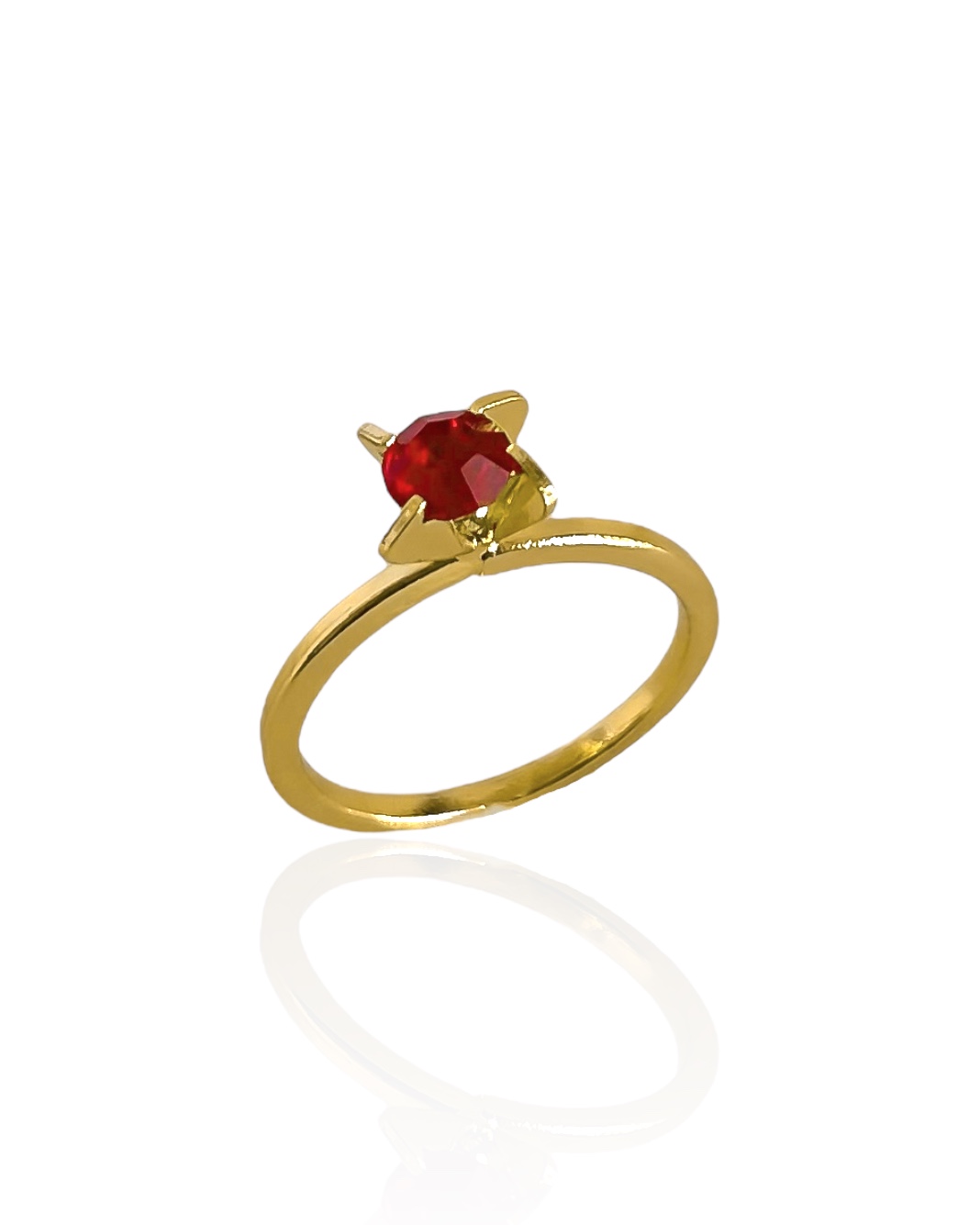 Anel Solitário 4 Garras Zircônia Vermelha - Banho de Ouro 18k