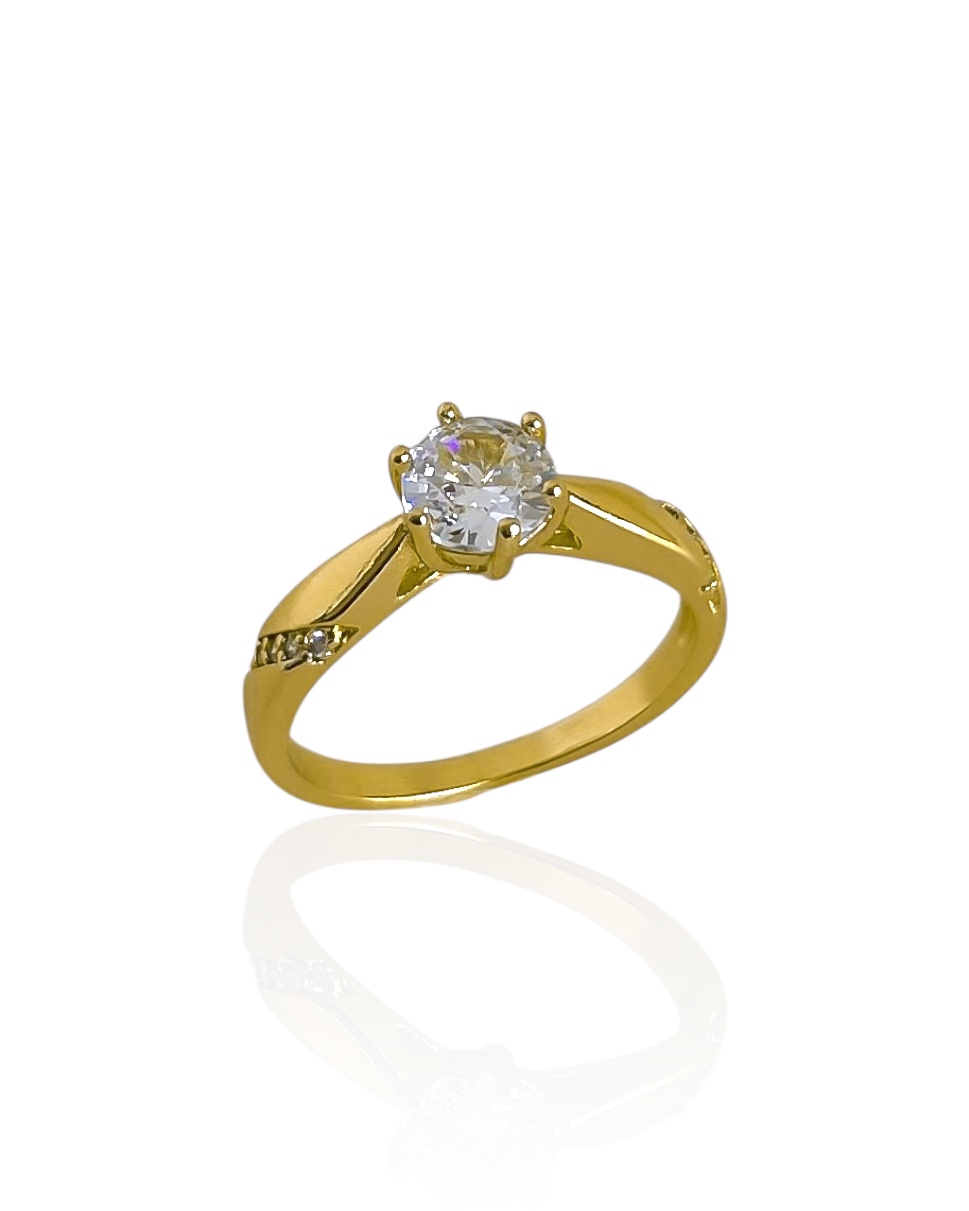 Anel Solitário com Zircônia Cristal Cravejado Diagonal - Banho de Ouro 18k