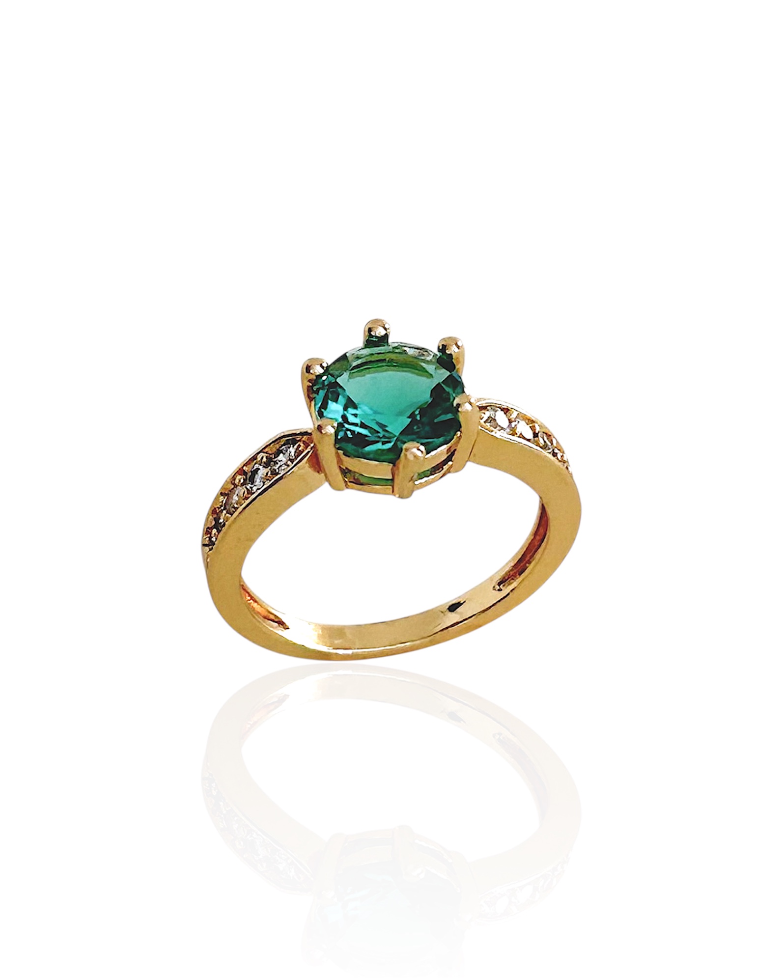Anel Zircônia Redonda Grande Verde Cravejado nas Laterais - Banho de Ouro 18k