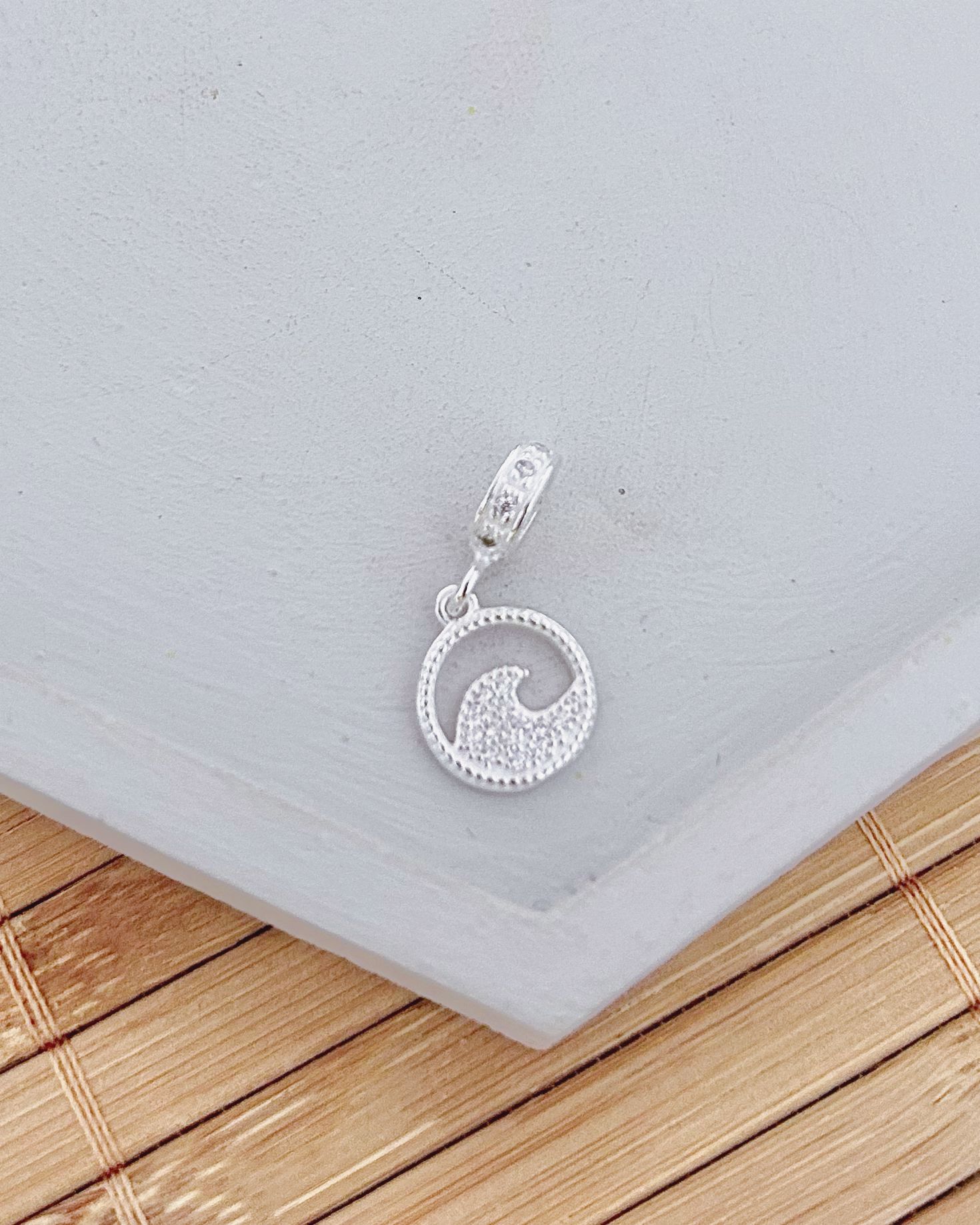 Berloque Circulo vazado com onda cravejada de zircônias, Pendurado. SEM PULSEIRA, apenas o berloque. Em Prata 925, compatível com todas as pulseiras!