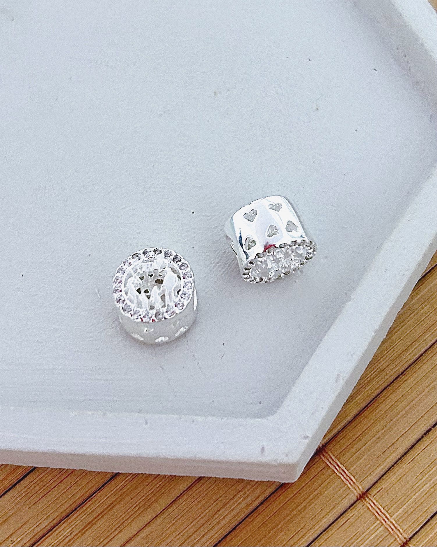 Berloque Familia Vazado com borda cravejada de zircônias cristal e corações vazados na lateral. SEM PULSEIRA, apenas o berloque. Em Prata 925, compatível com todas as pulseiras!