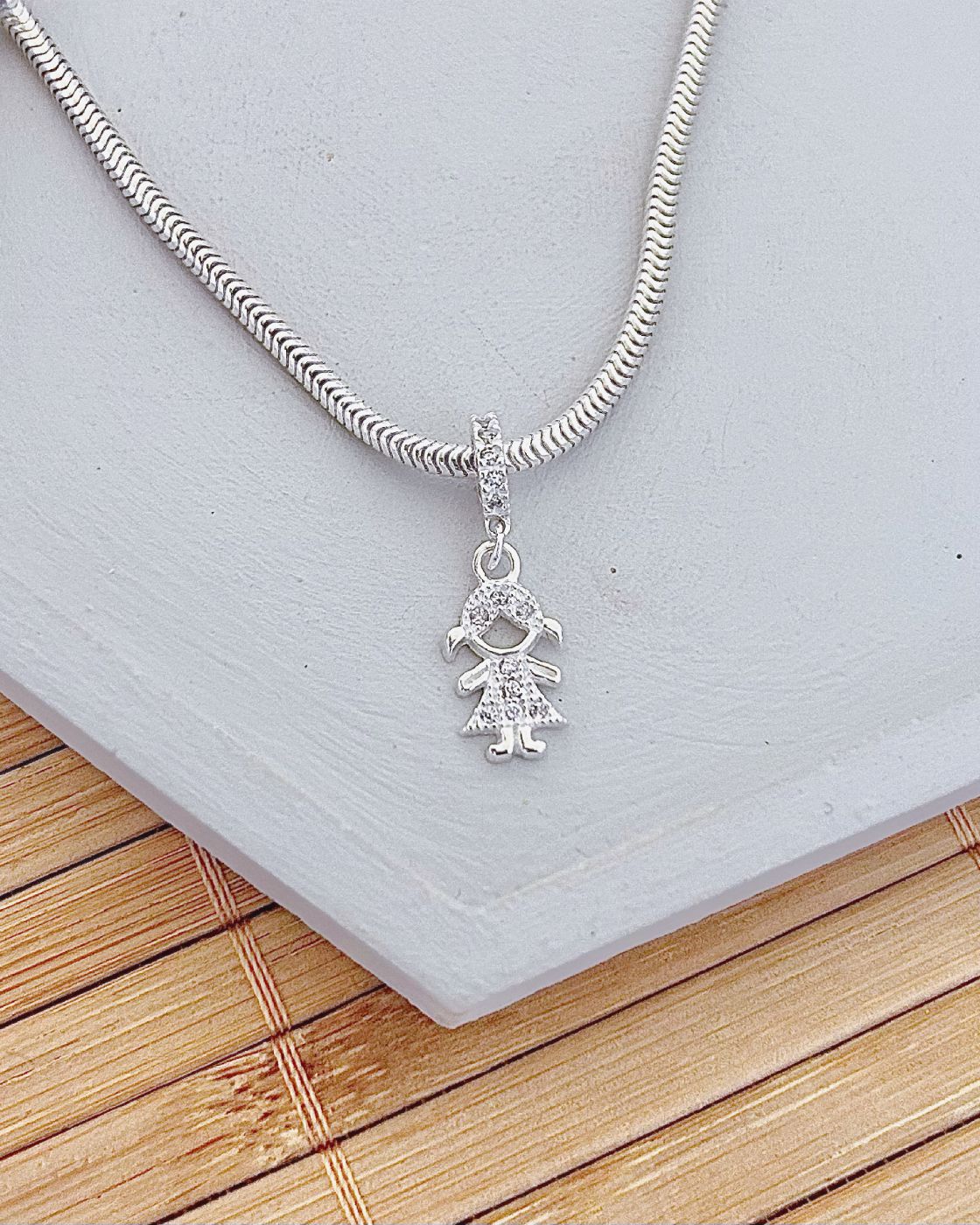 Berloque Menina pendurada cravejada com zircônias cristal. SEM PULSEIRA, apenas o berloque. Em Prata 925, compatível com todas as pulseiras!