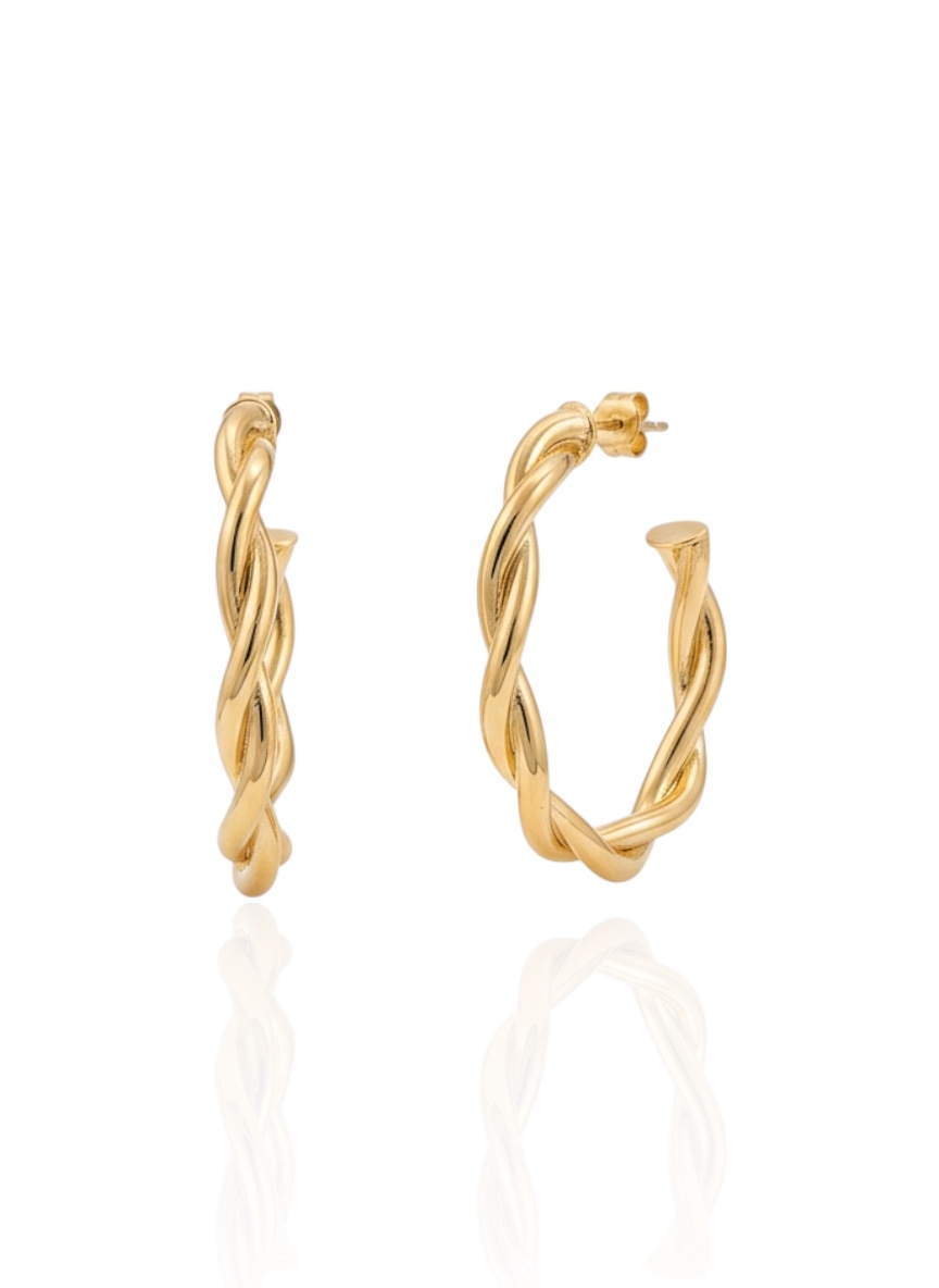 Brinco Argola Oval Torcida 4,5cm - Banho de Ouro 18k