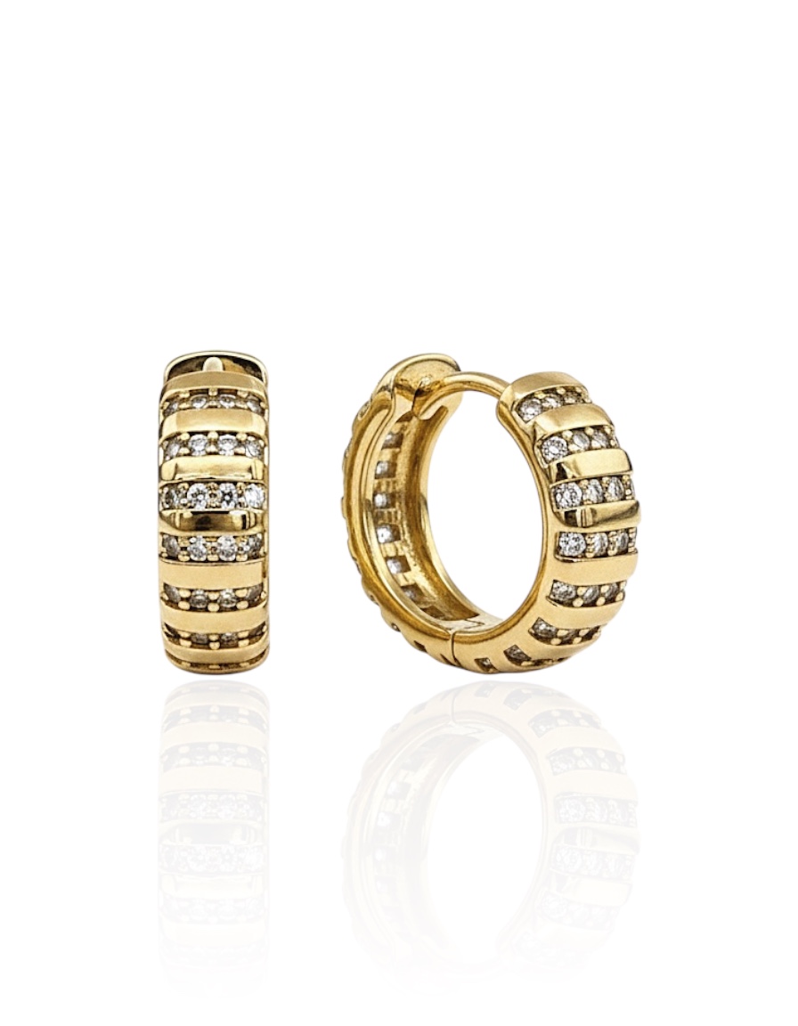 Medidas: 1,5cm Espessura: 0,5cm Material: Metal Banhado a ouro 18k e Zircônia