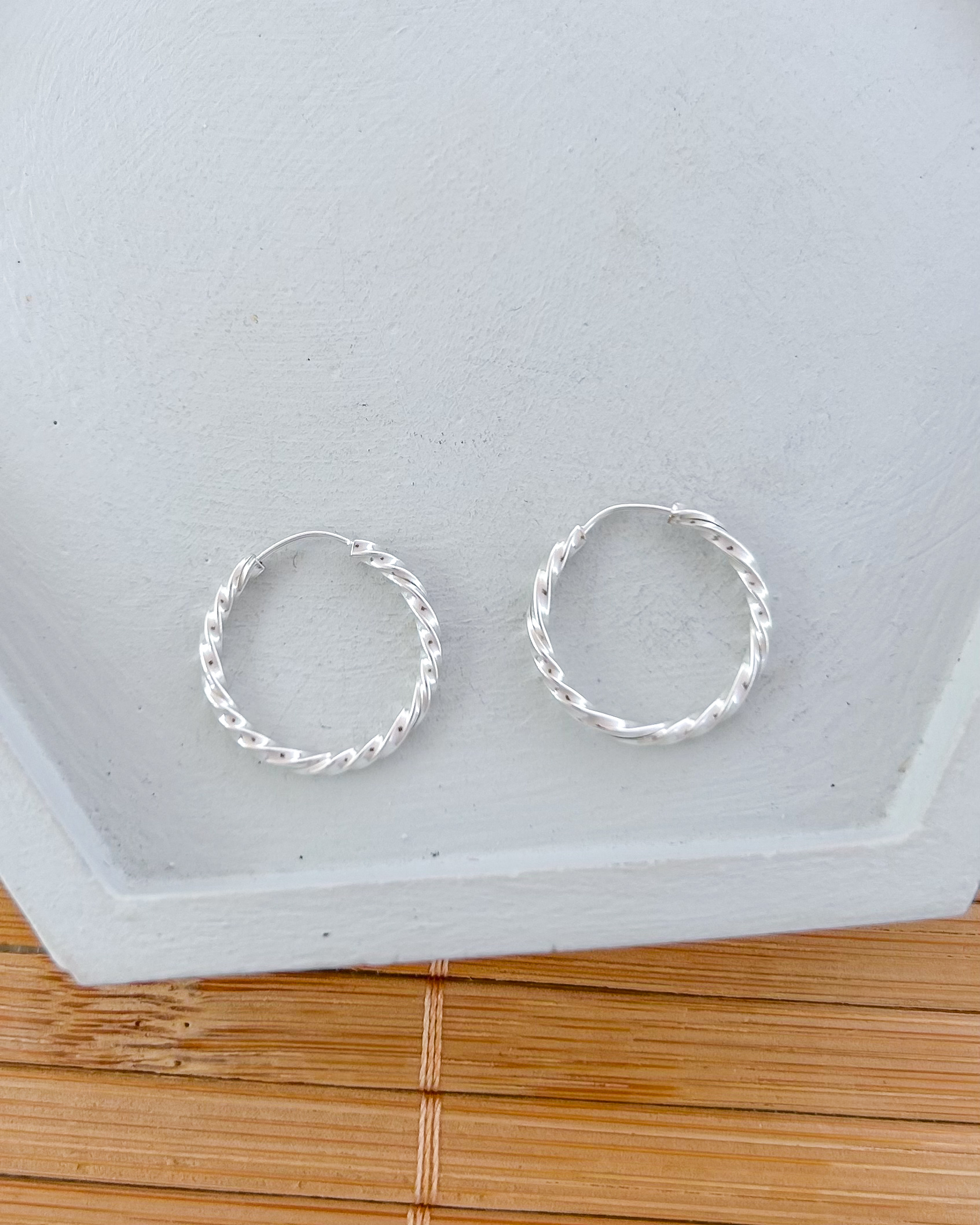 Brinco em Prata 925 Argolinha Fina Fio Torcido Fechamento de encaixe!