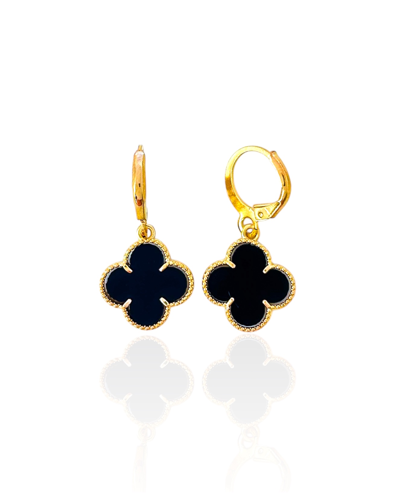 Brinco Argolinha Trevo Resina Preto - Banho Ouro 18k