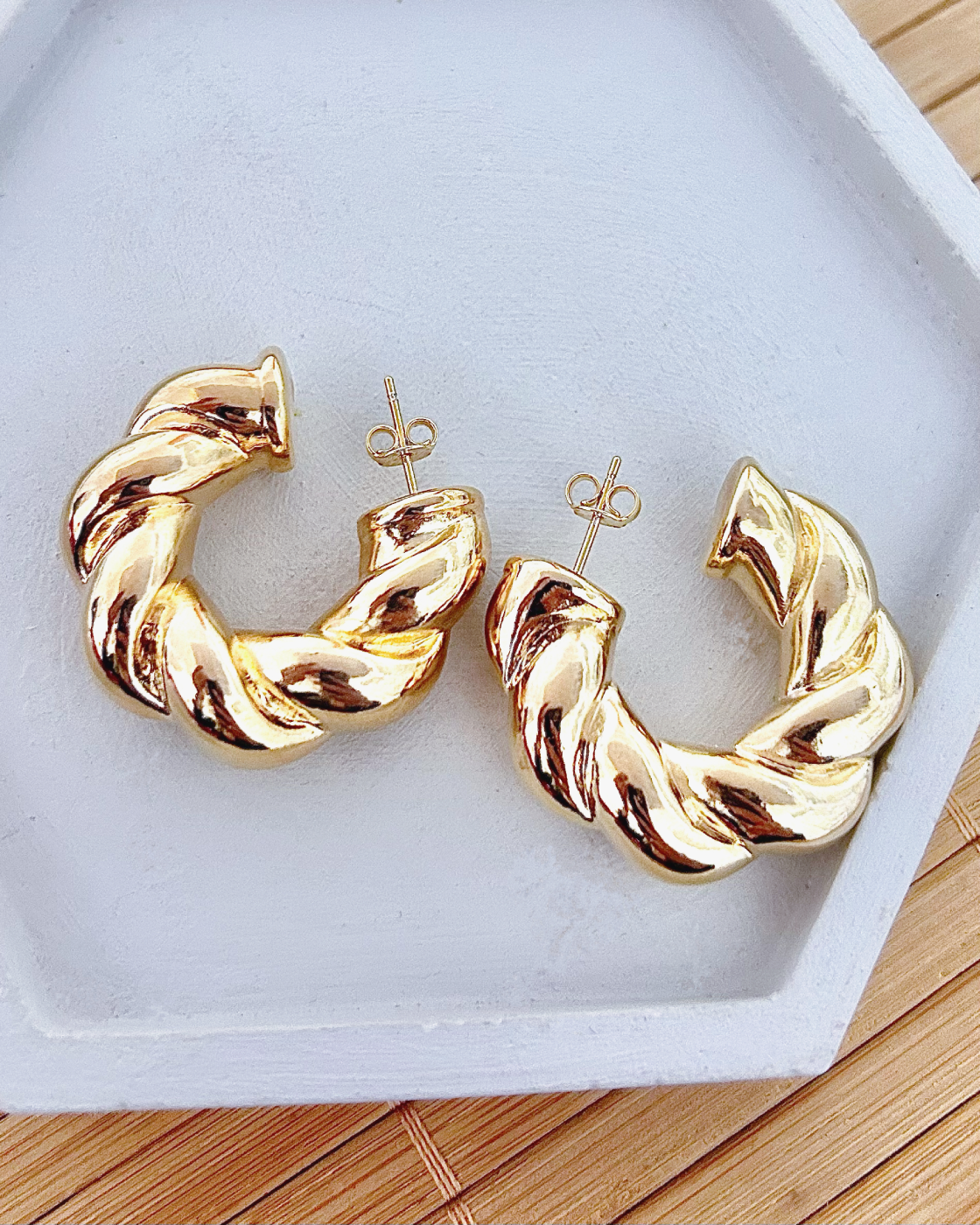 Brinco Banhado a Ouro 18k Argola Tubo Torcida Grossa!