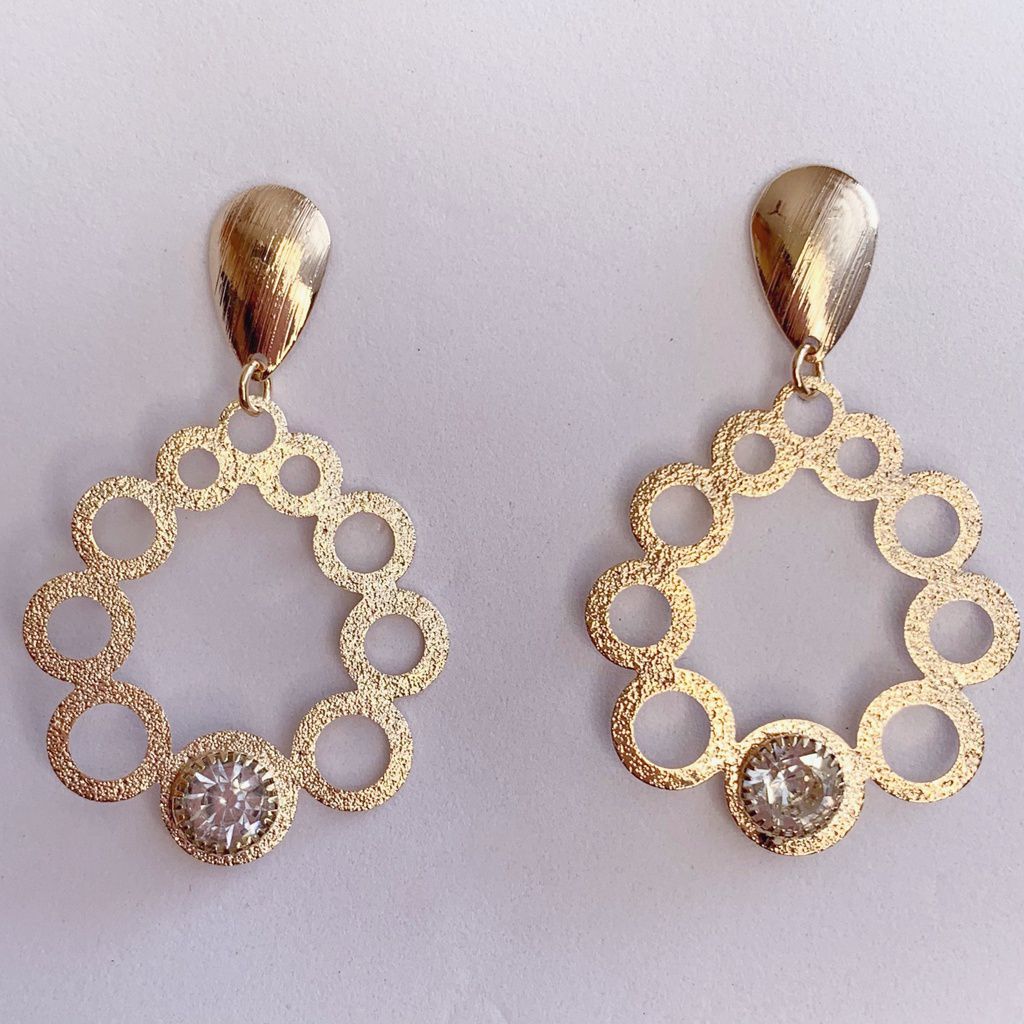 Brinco Banhado a Ouro Circulos Grande c/ 1 Zircônia