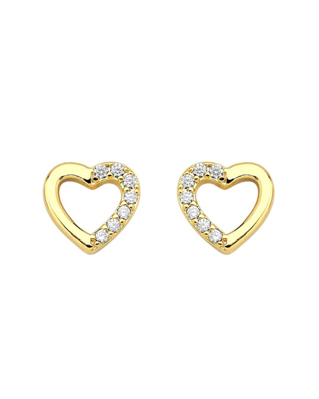 Brinco Banhado a Ouro Coração Metade Cravejado Vazado 0,7cm