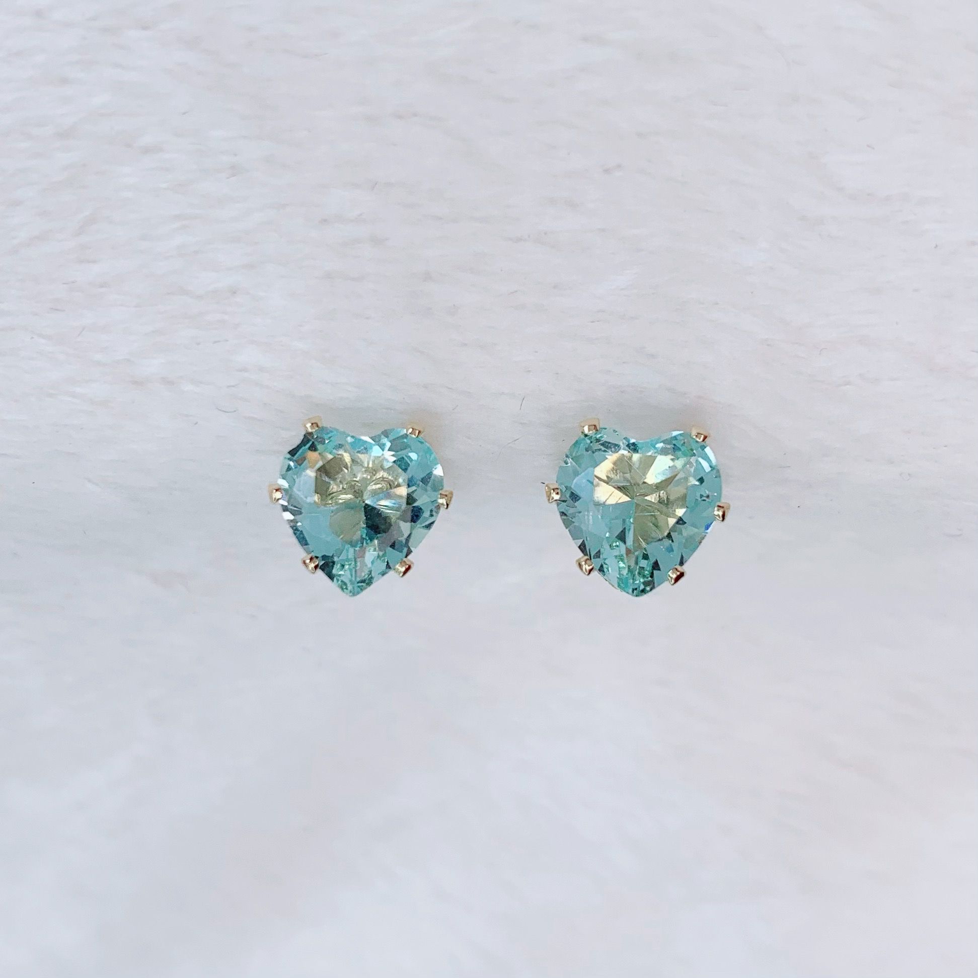 Brinco Coração Zirconia Azul Claro 6mm - Banho de Ouro 18k