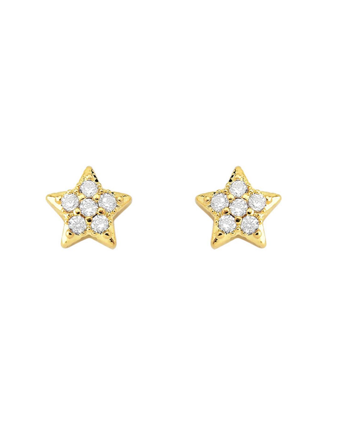 Brinco Banhado a Ouro Estrela Cravejada 0,6cm