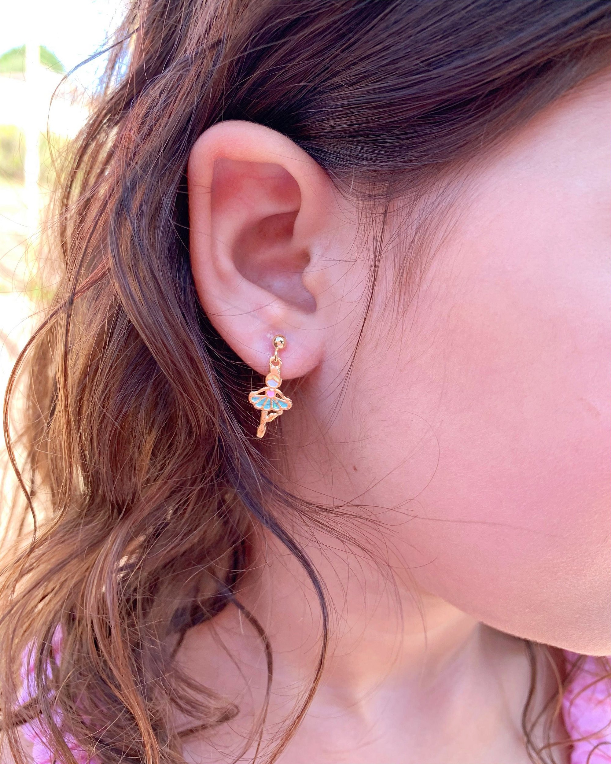Brinco Banhado a Ouro Infantil Bailarina Pendurada Resina Colorido