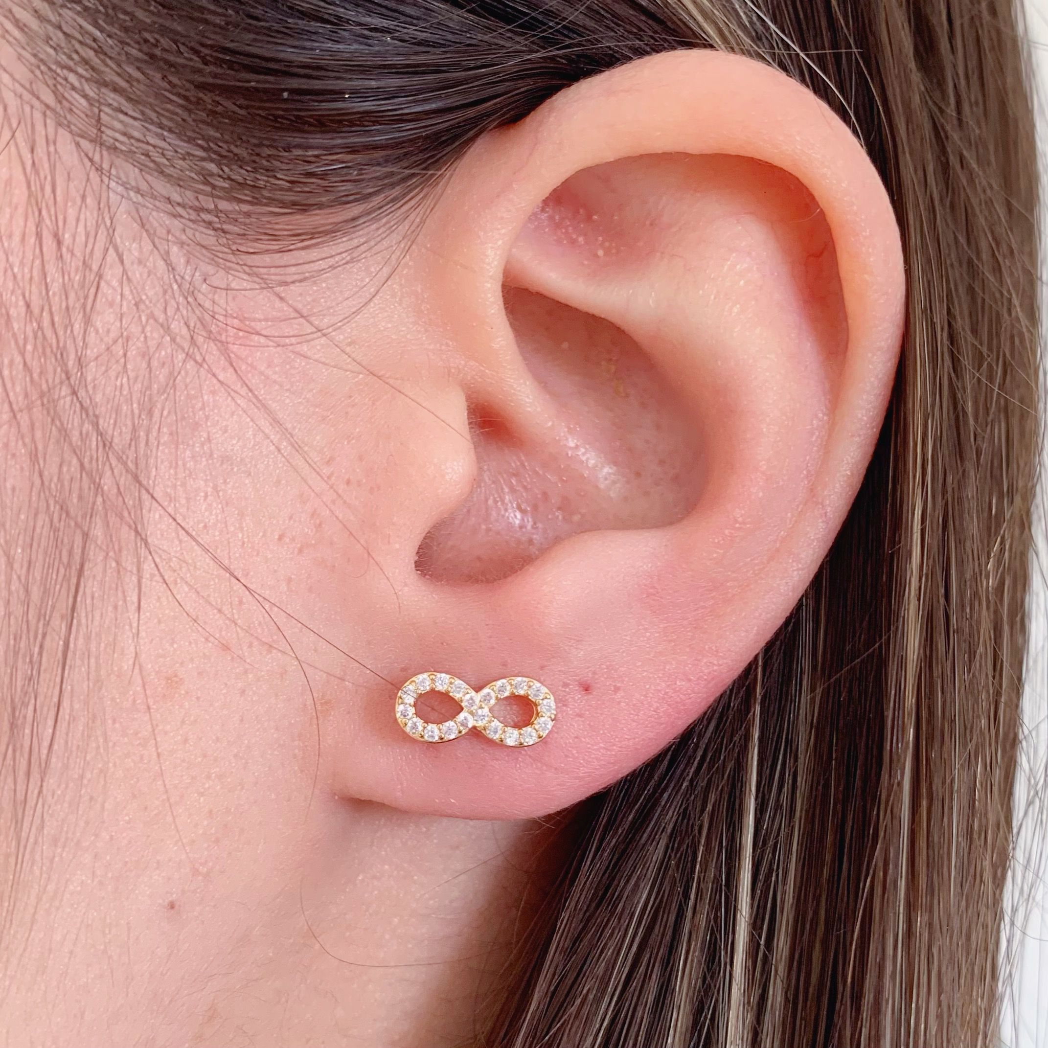 Brinco Infinito Cravejado c/ Zirconia Incolor - Banho de Ouro 18k