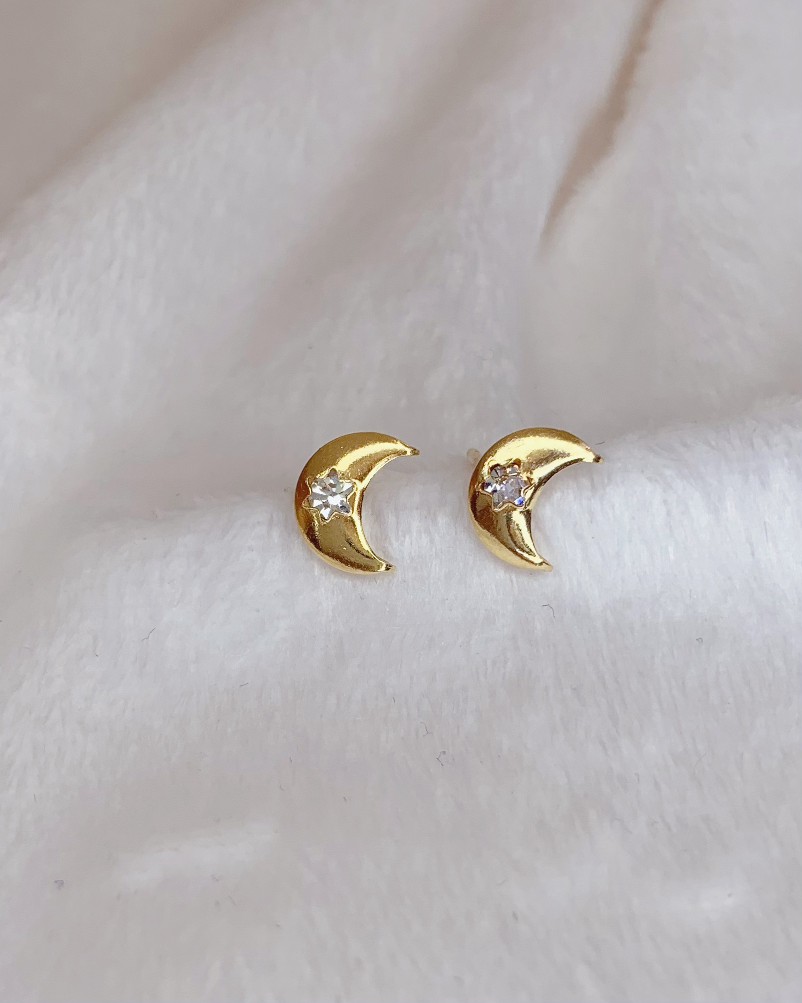Brinco Lua Estrela c/ Zirconia 1cm - Banho de Ouro 18k