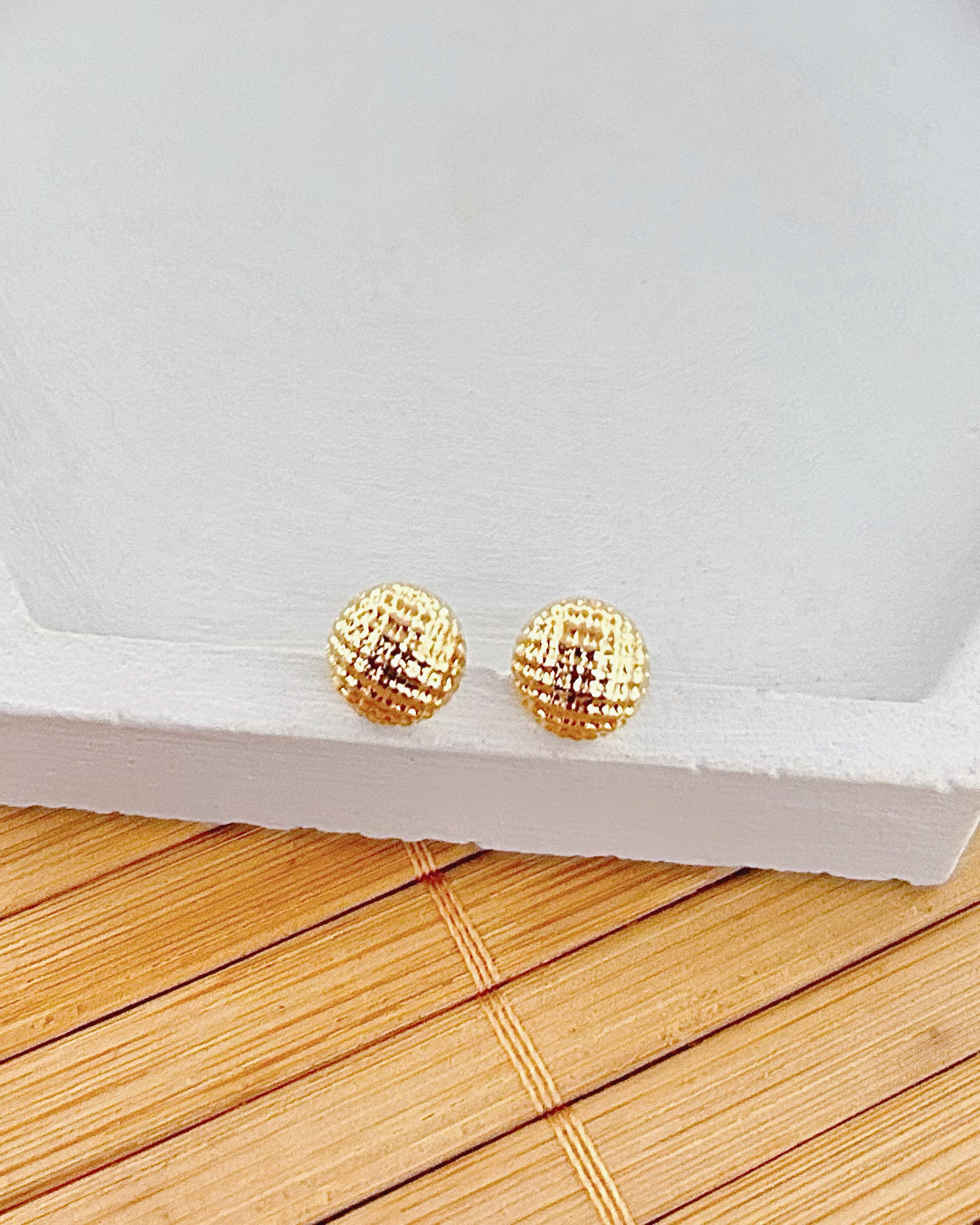 Brinco Banhado a Ouro 18k Meia Esfera Trabalhada!