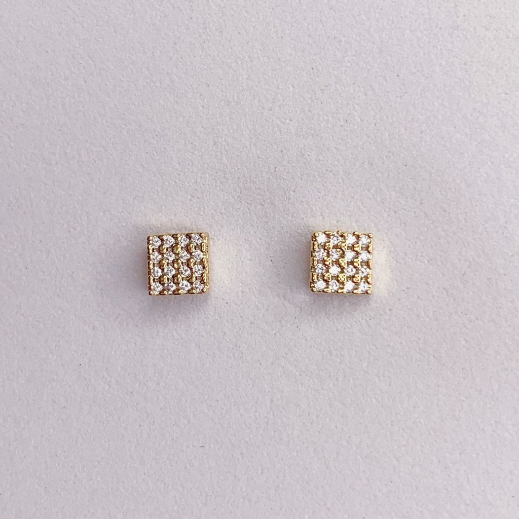 Brinco Mini Quadrado Cravejado 0,4cm - Banho de Ouro 18k
