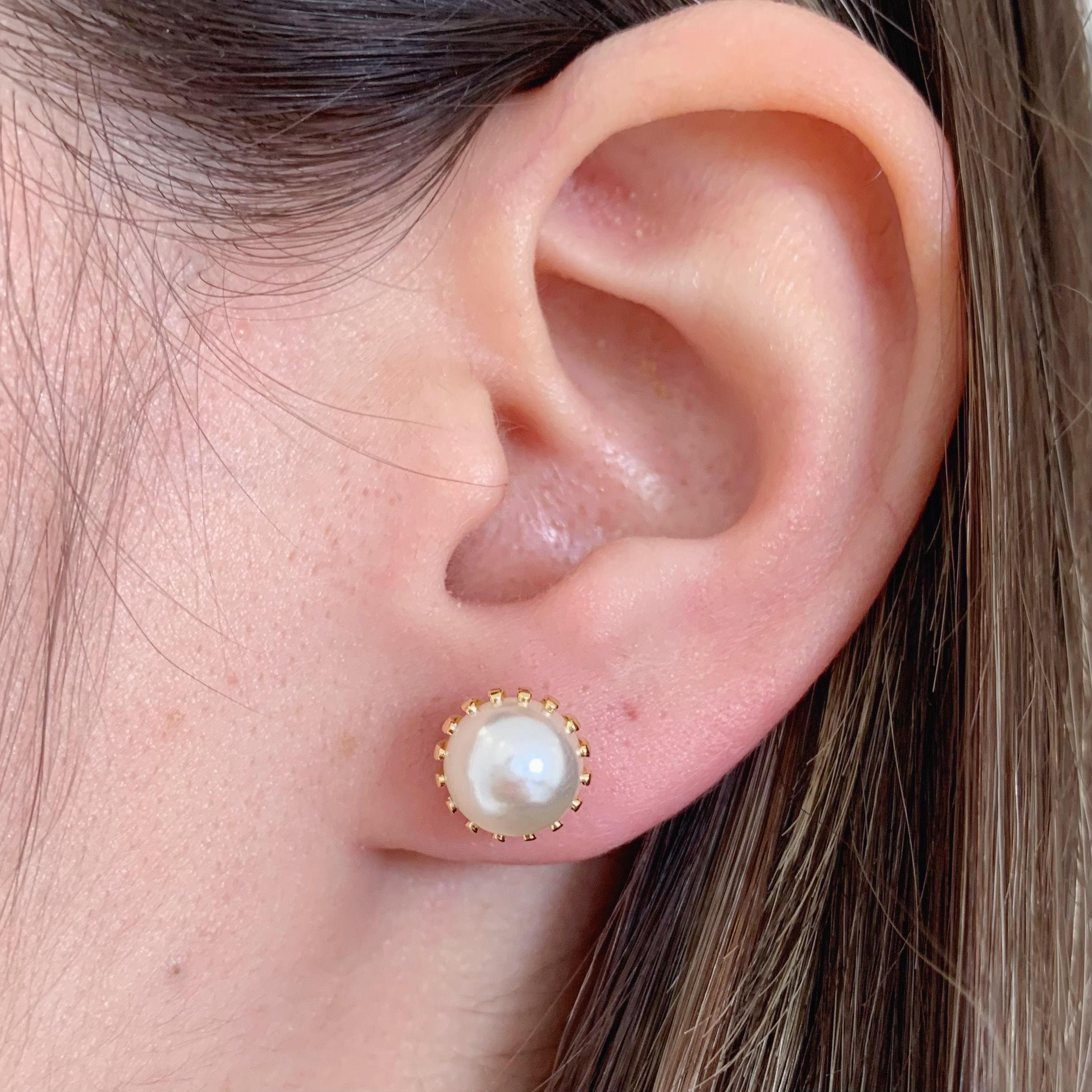Brinco Banhado a Ouro Perola Media c/ Chatão