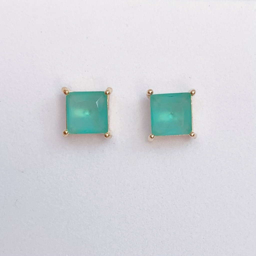 Brinco Quadrado Turmalina Leitoso 0,6cm - Banho de Ouro 18k