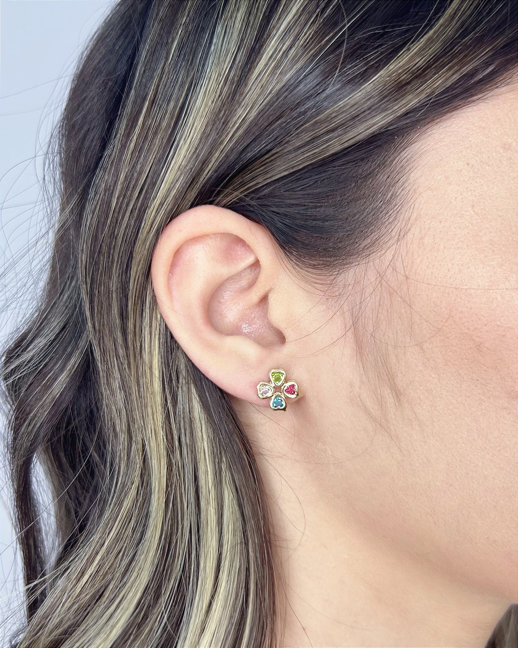 Brinco Banhado a Ouro Trevo Colorido 1,1cm
