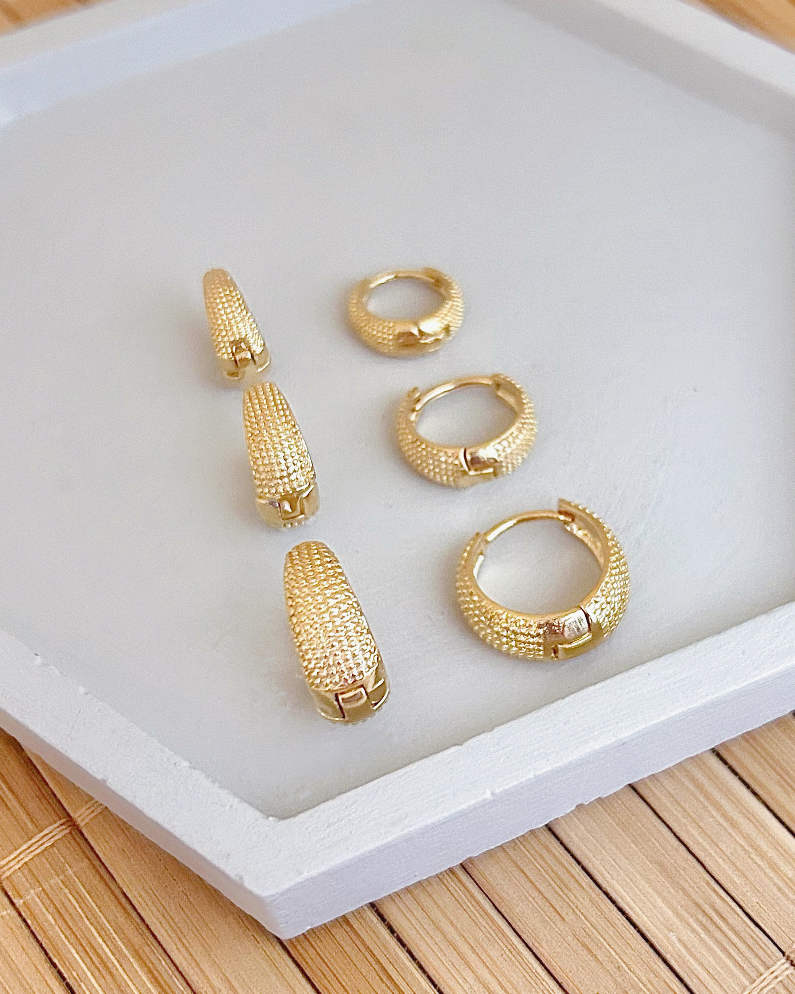 Trio de Brincos Banhado a Ouro 18k argolinha trabalhada, fechamento click!