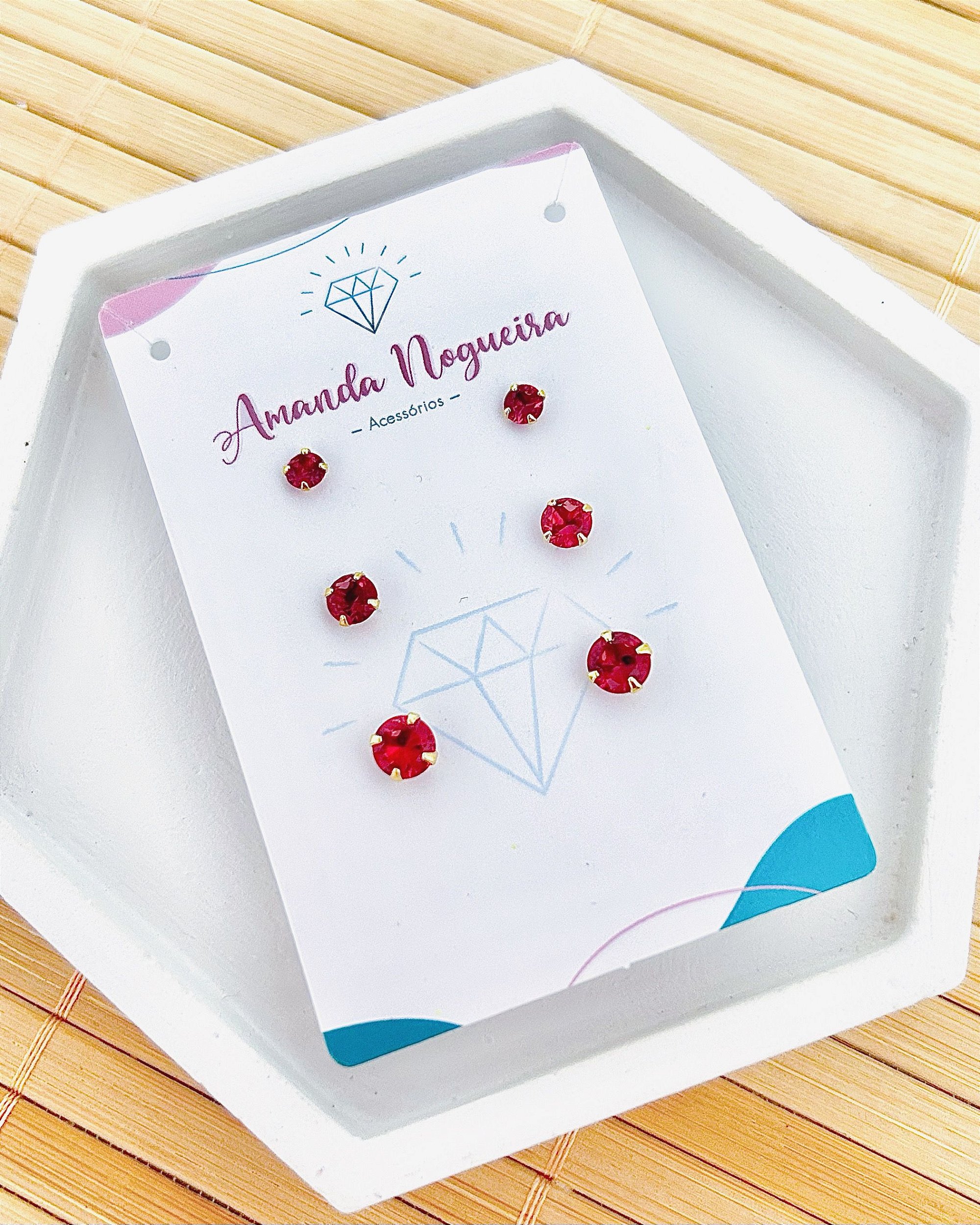Brinco Banhado a Ouro Trio Zircônia Pink