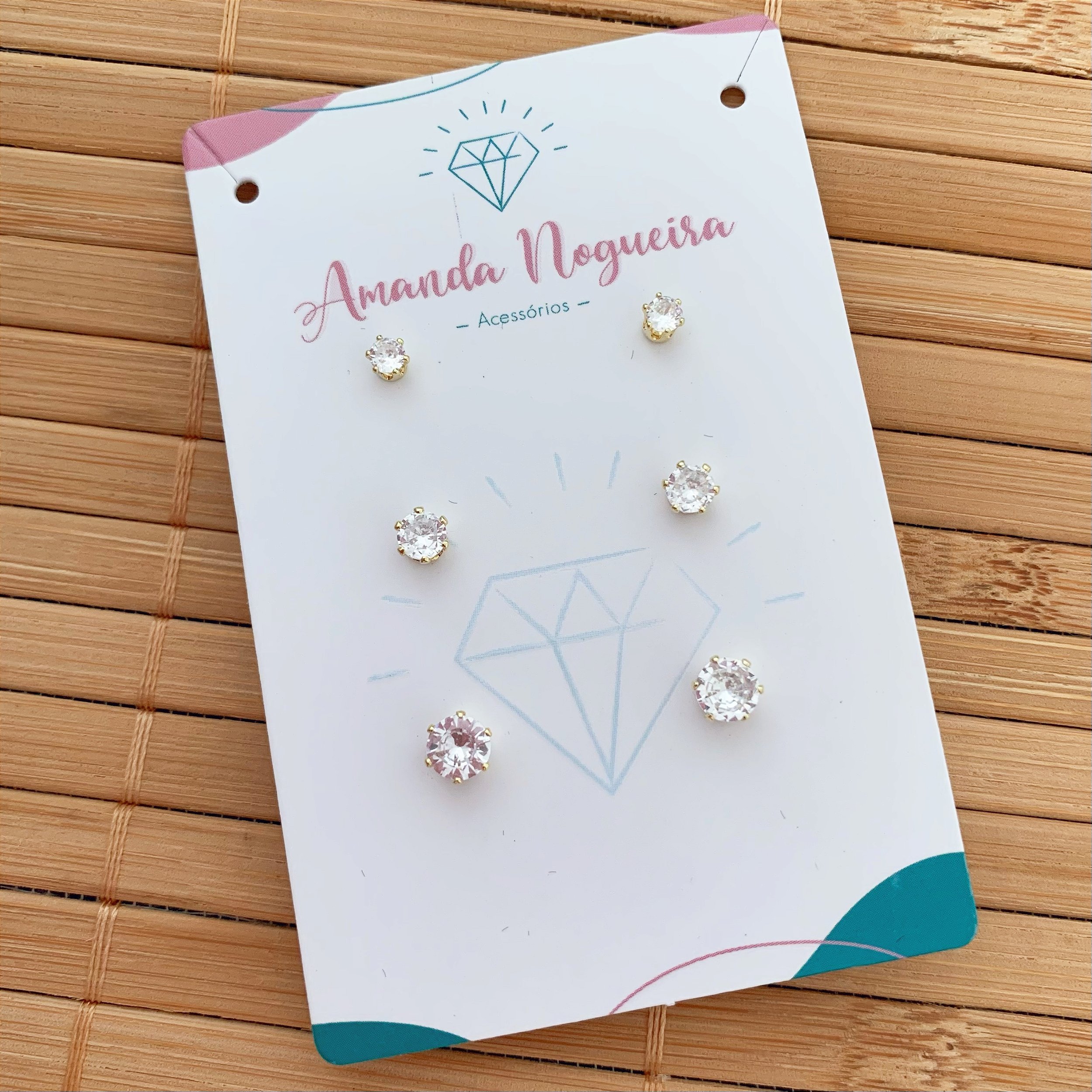 Brinco Banhado a Ouro Trio Zircônia Redonda