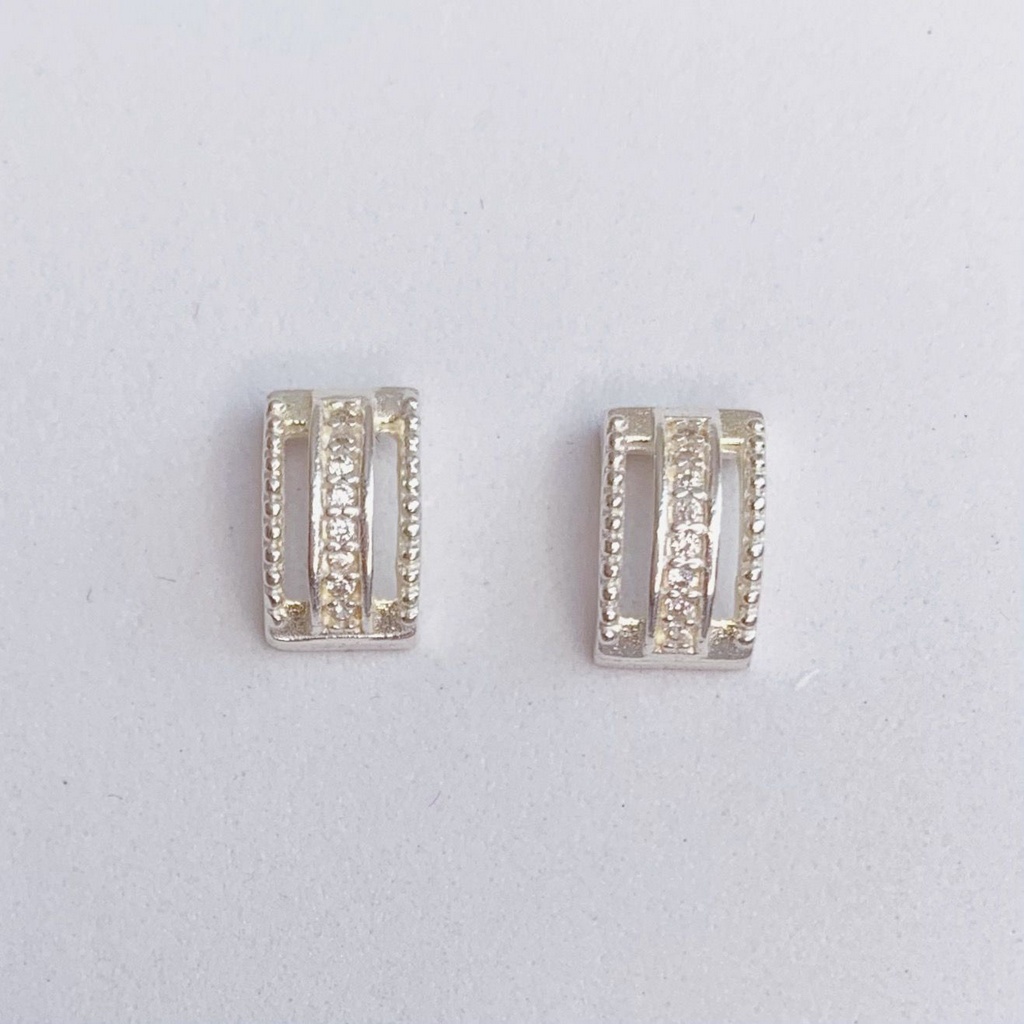 Brinco de Prata 3 Linhas c/ Meio Cravejado 0,9cm