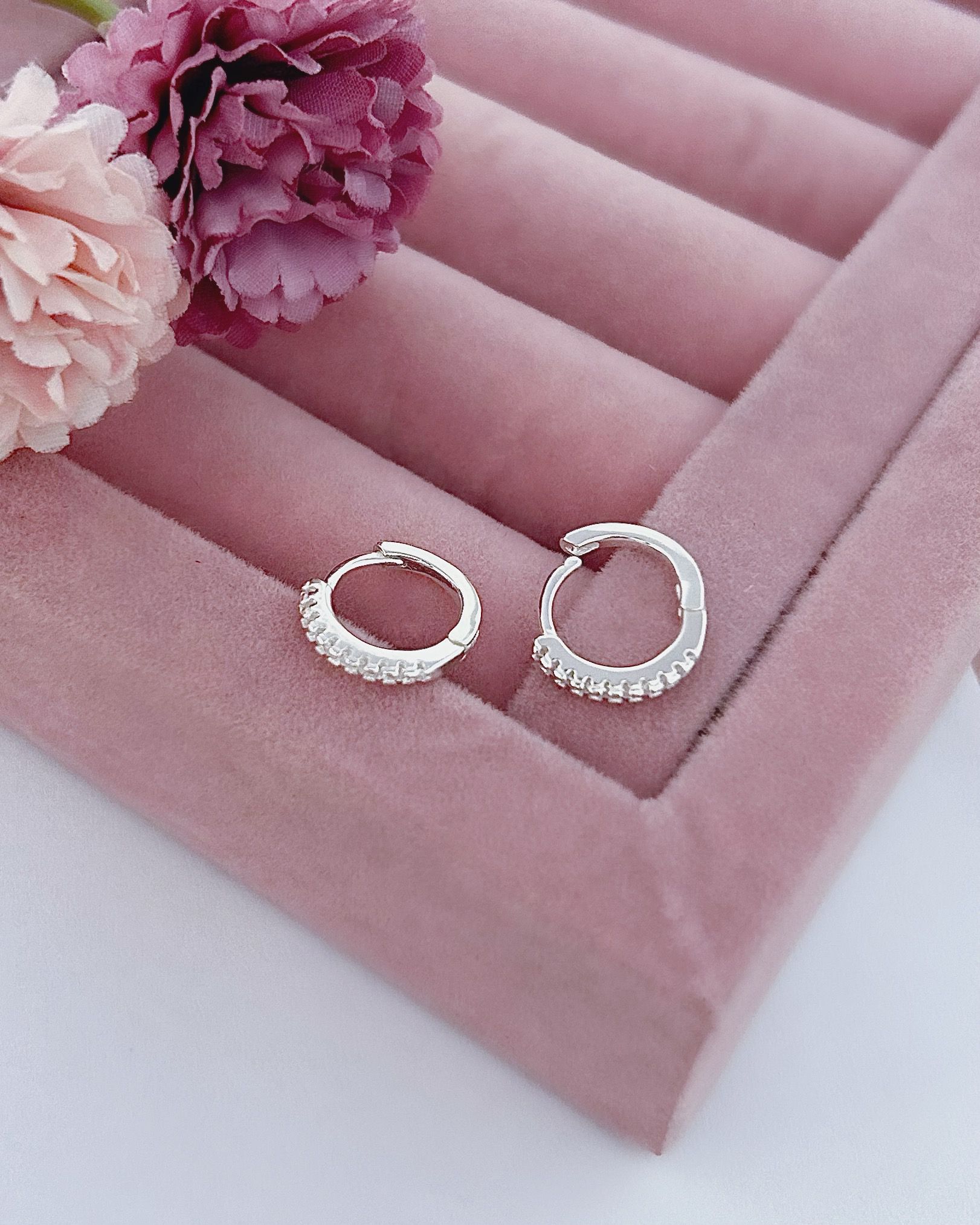 Brinco de Prata Argola Click Cravejada 1,4cm x 2mm