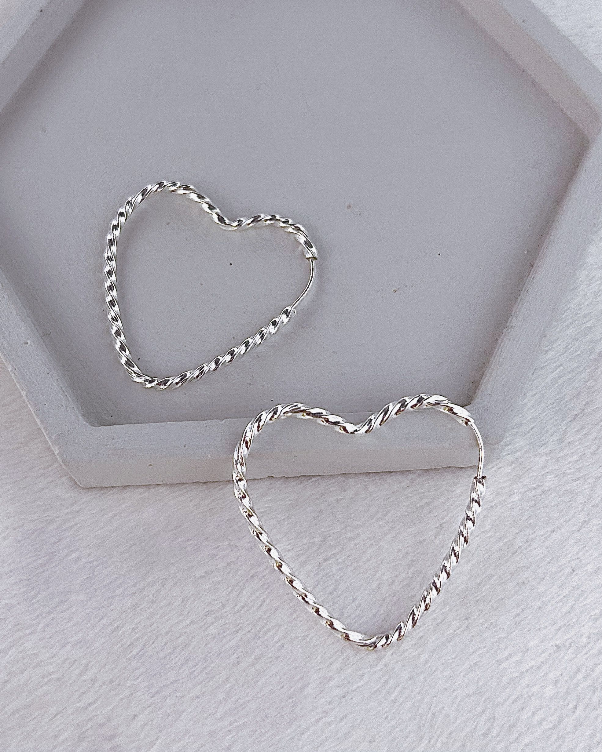 Brinco de Prata Argola Coração Torcido Encaixe 2mm x 3,5cm