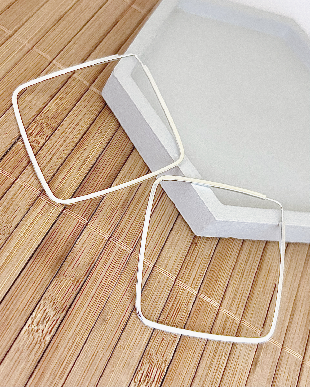 Brinco em Prata 925 Argola Quadrada grande Aro Quadrado com Fechamento de Encaixe!