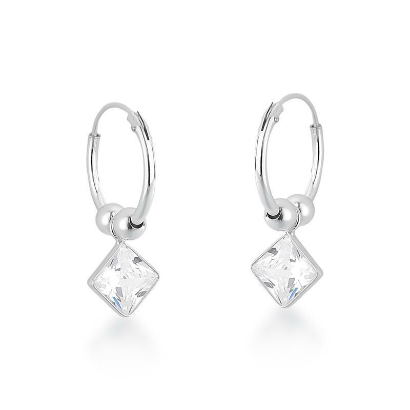 Brinco de Prata Argolinha c/ Pingente Zircônia Quadrada de Encaixe 1,2cm