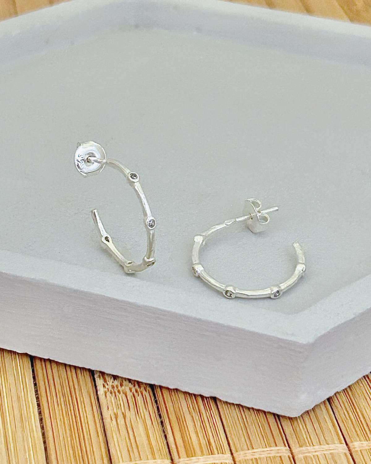 Brinco em Prata 925 Argolinha Fina com 5 Pontos de Luz Zircônia cravejada!